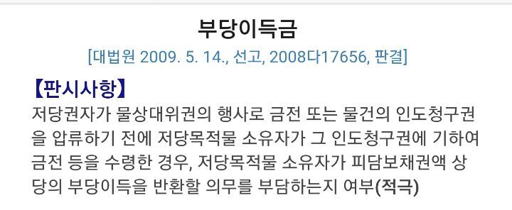1. '저당권이 설정된 부동산에 대하여(다른채권자가 없다면) 소유자가 저당목적물에 갈음하는 금전 등을 수령한 경우 저당권자는 그 금전 등을 반환 받을 수 없다.'