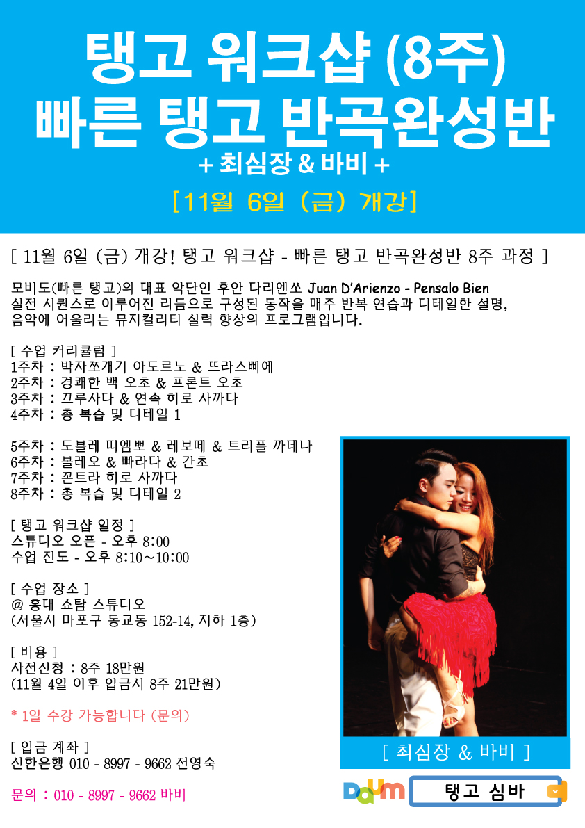 [ 11월 6일 (금) 개강! 탱고 워크샵 - 빠른 탱고 반곡완성반 8주 과정 ]
