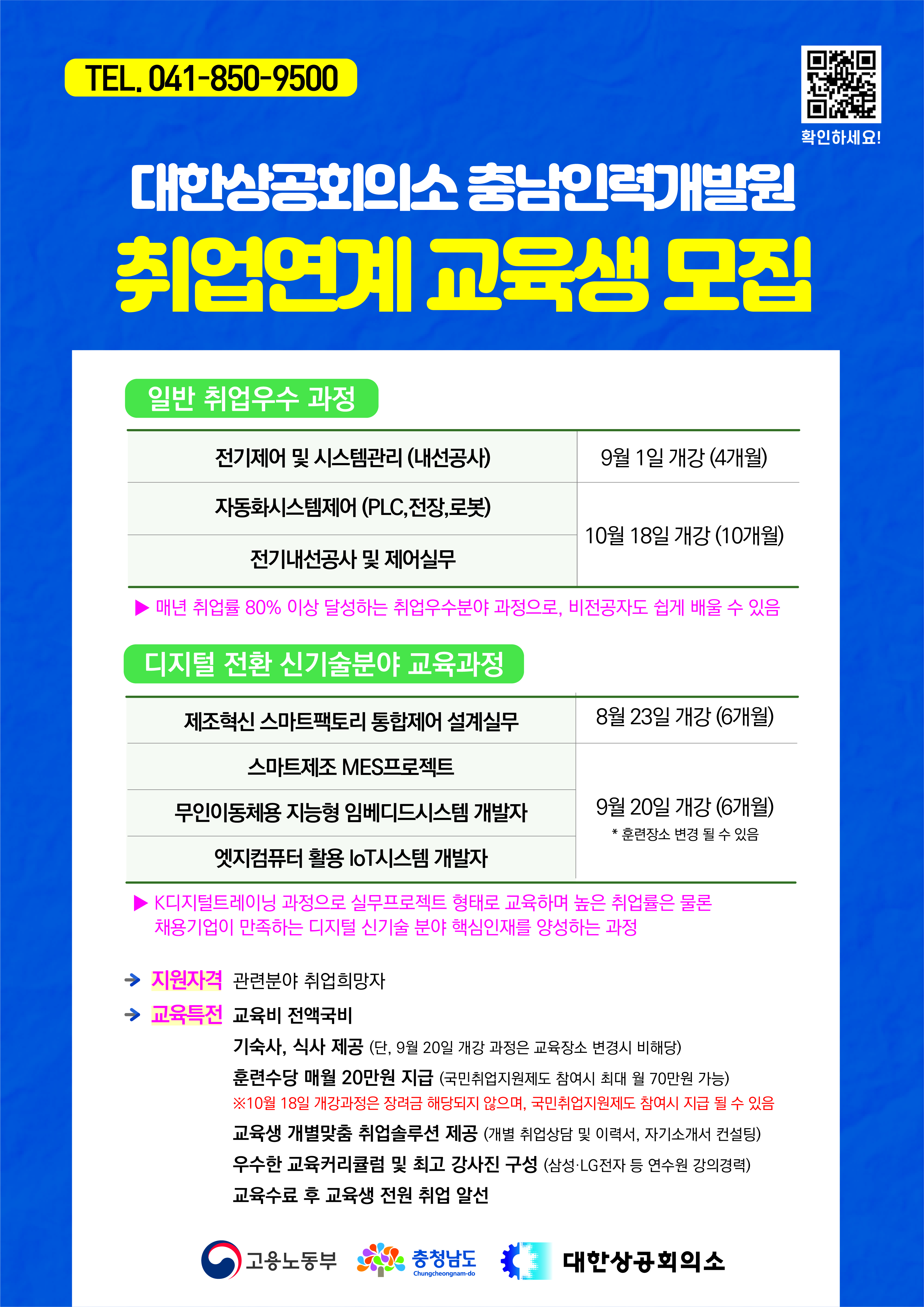 전액 국비 무료로 운영되고 있으며, 기숙사 및 식비도 무료이며, 훈련수당도 매월 지급되고 있습니다