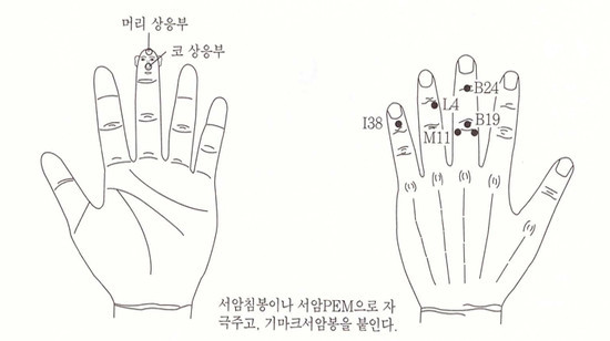 목감기와 편도선염을 수지침으로 치료하는 방법