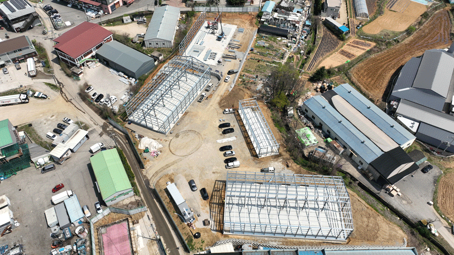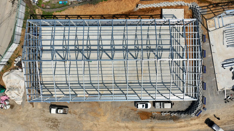 창고건축 LEB(경량철골)+H빔 복합시공 용인 1,100평 현장