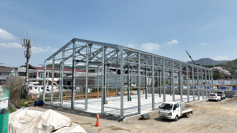 구조 : L.E.B시스템 (경량철골조) + H빔(일반구조)