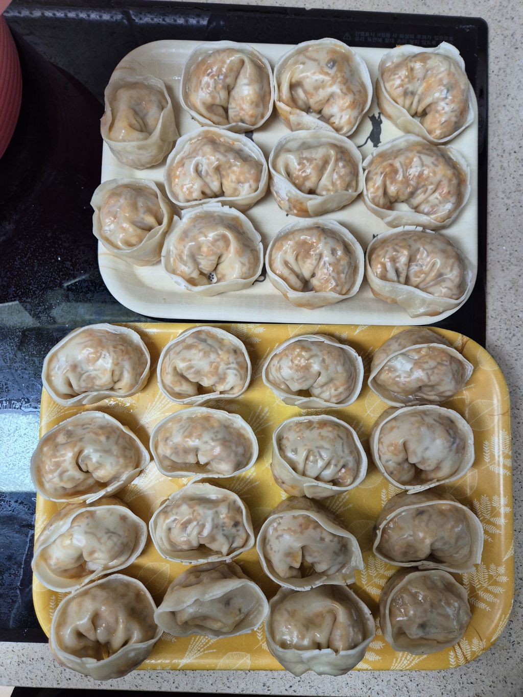 만두피가 큰거라 하나가 남아