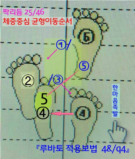 2,4,6짝발 볼로만 착지를 하며 중심이동은 당연한것이고 평소1.3.5발은