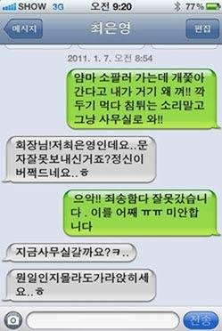 ▲... 한진해운회장에 “얌마 사무실로 와” “잘못 보낸거죠” 답장에 사과 해프닝