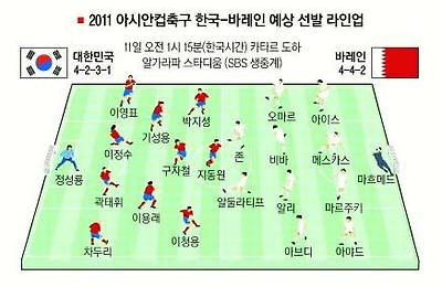 ☞아시안컵 축구 한국-바레인 예상 선발라인업