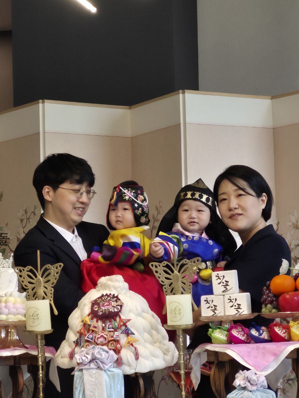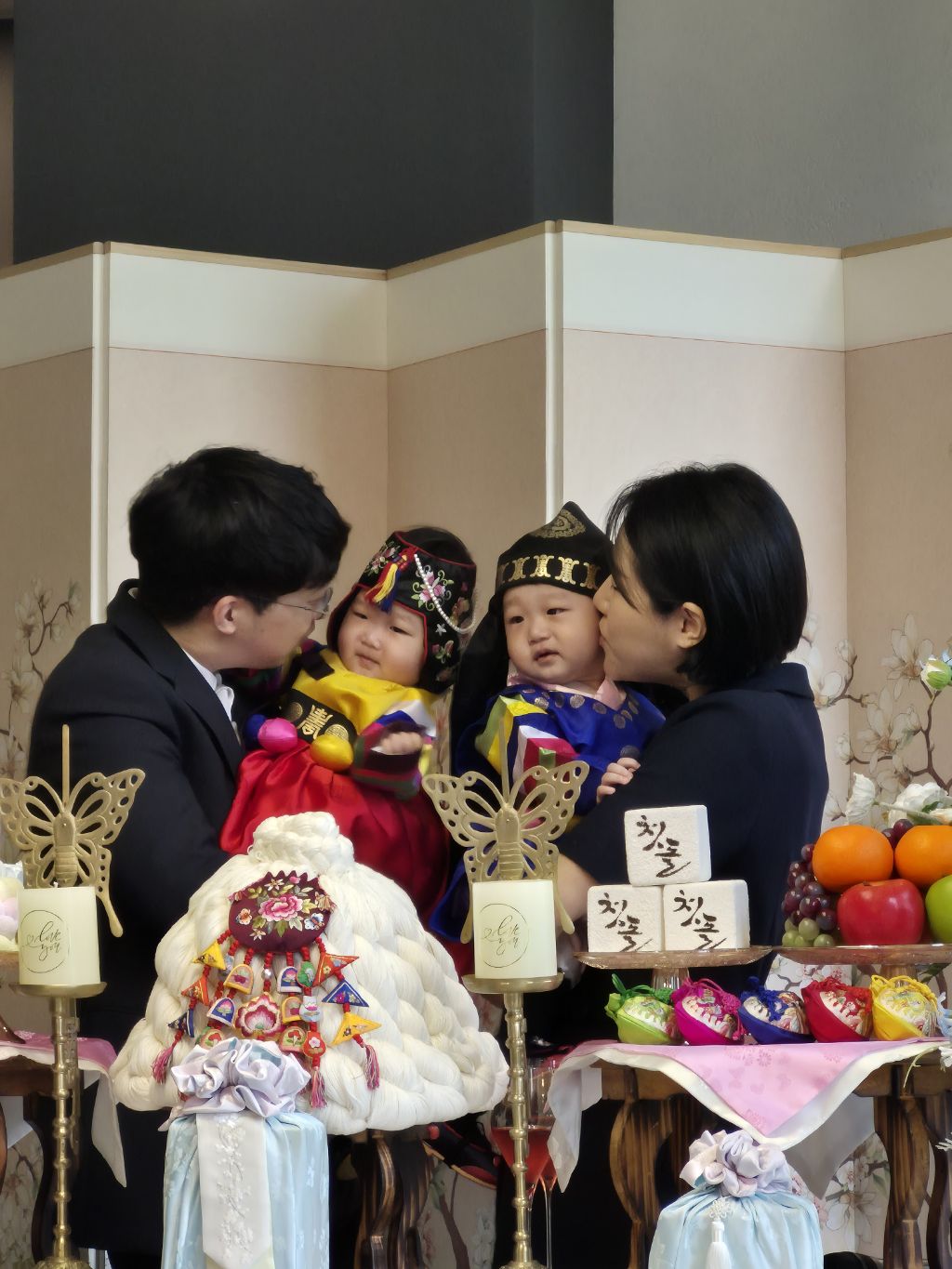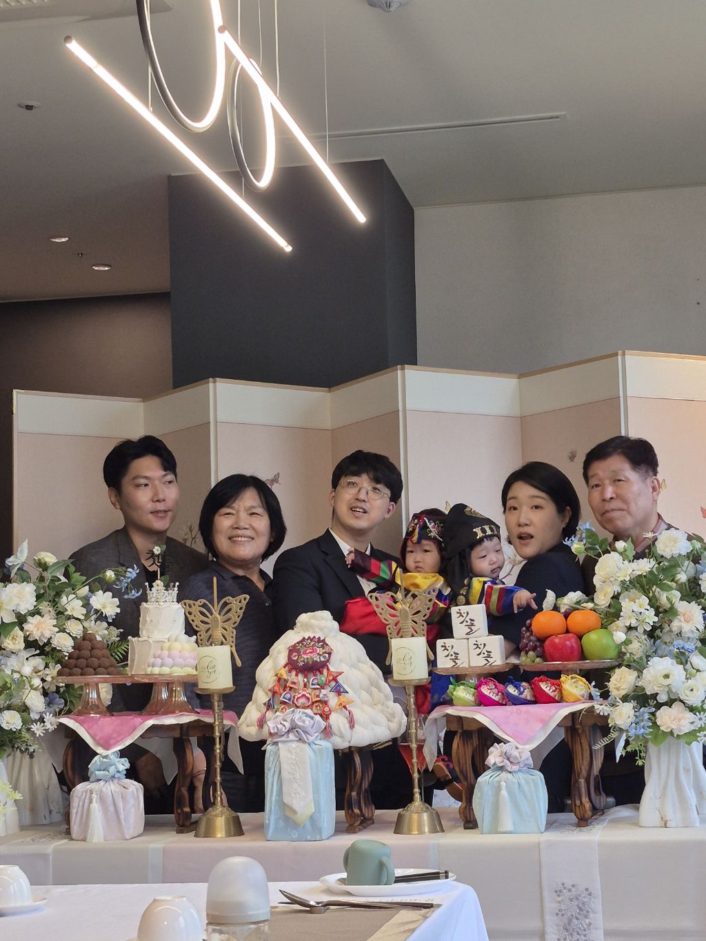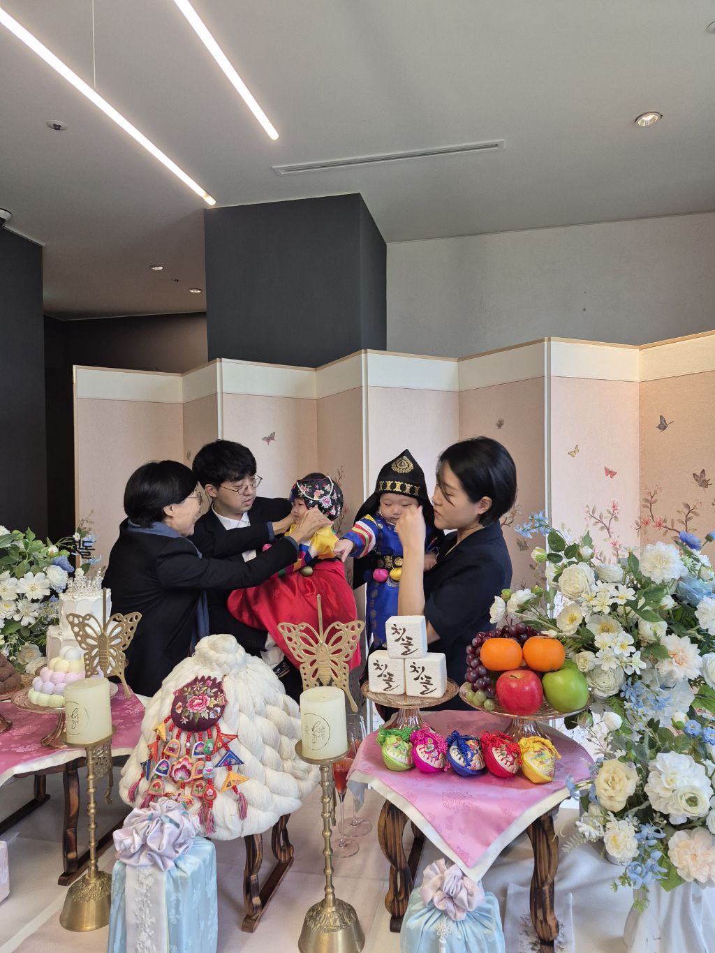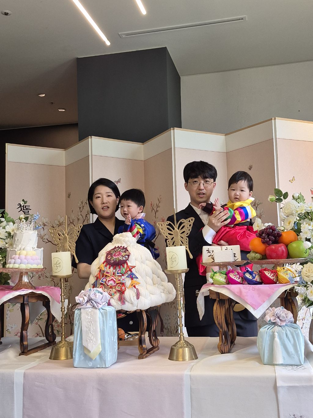 오늘 쌍둥이 돌 잔치를 수원 동류관에서 했다.