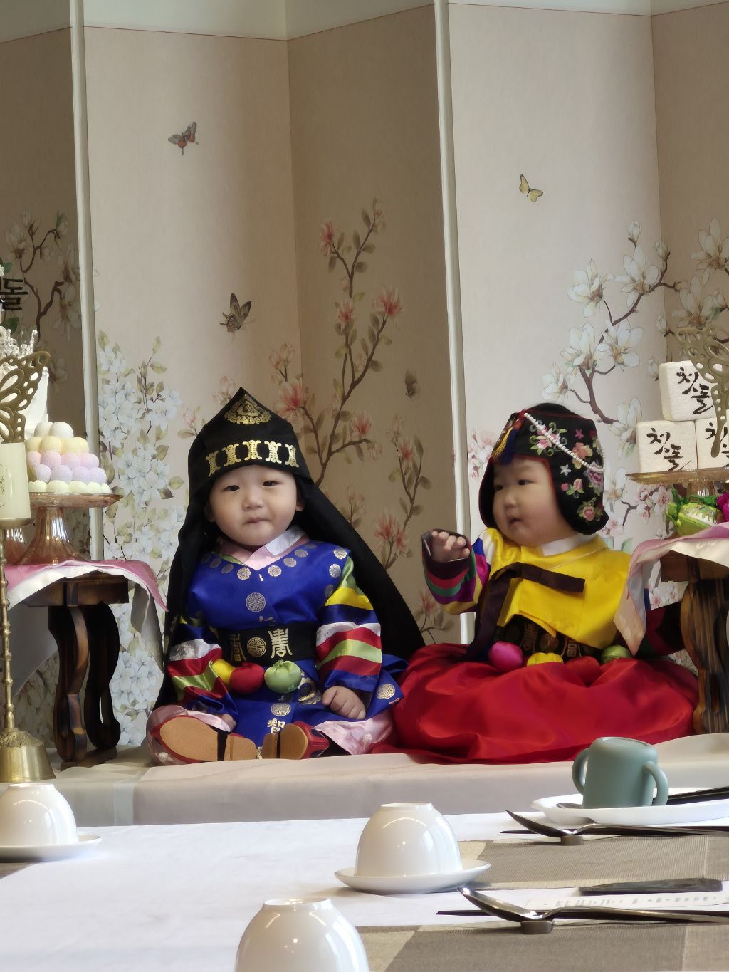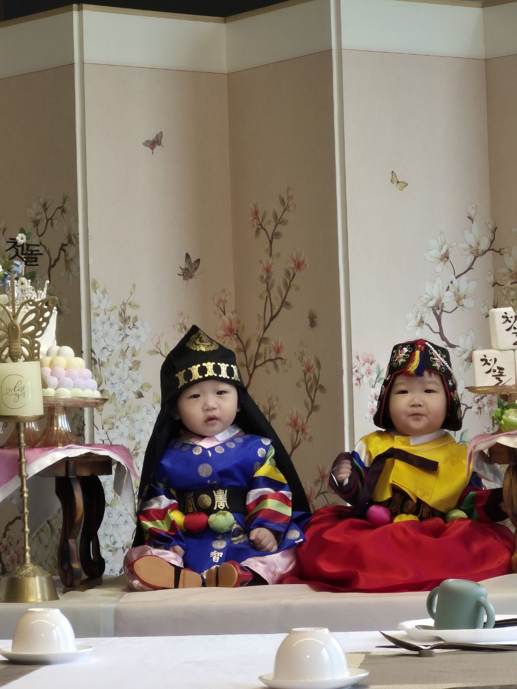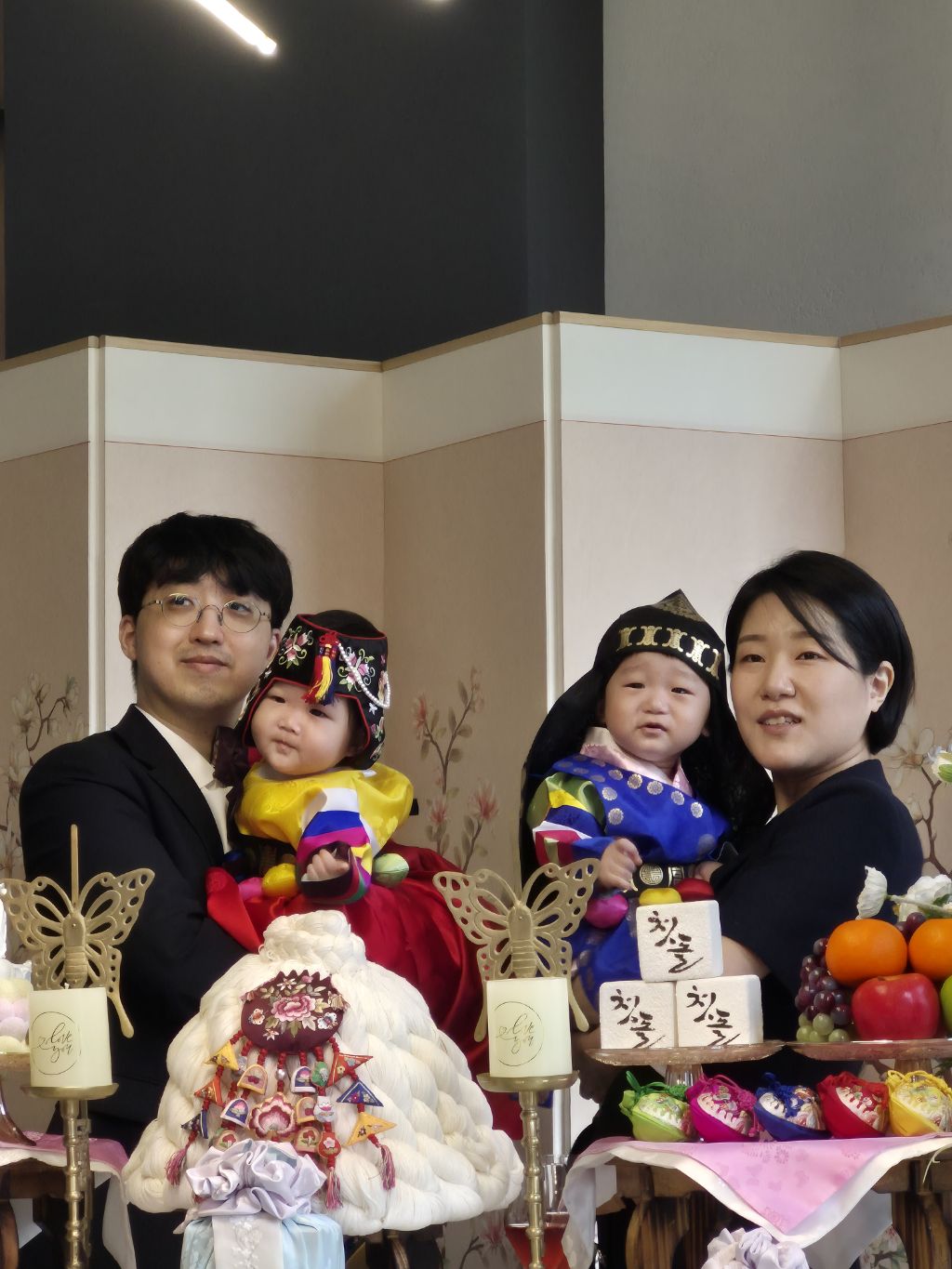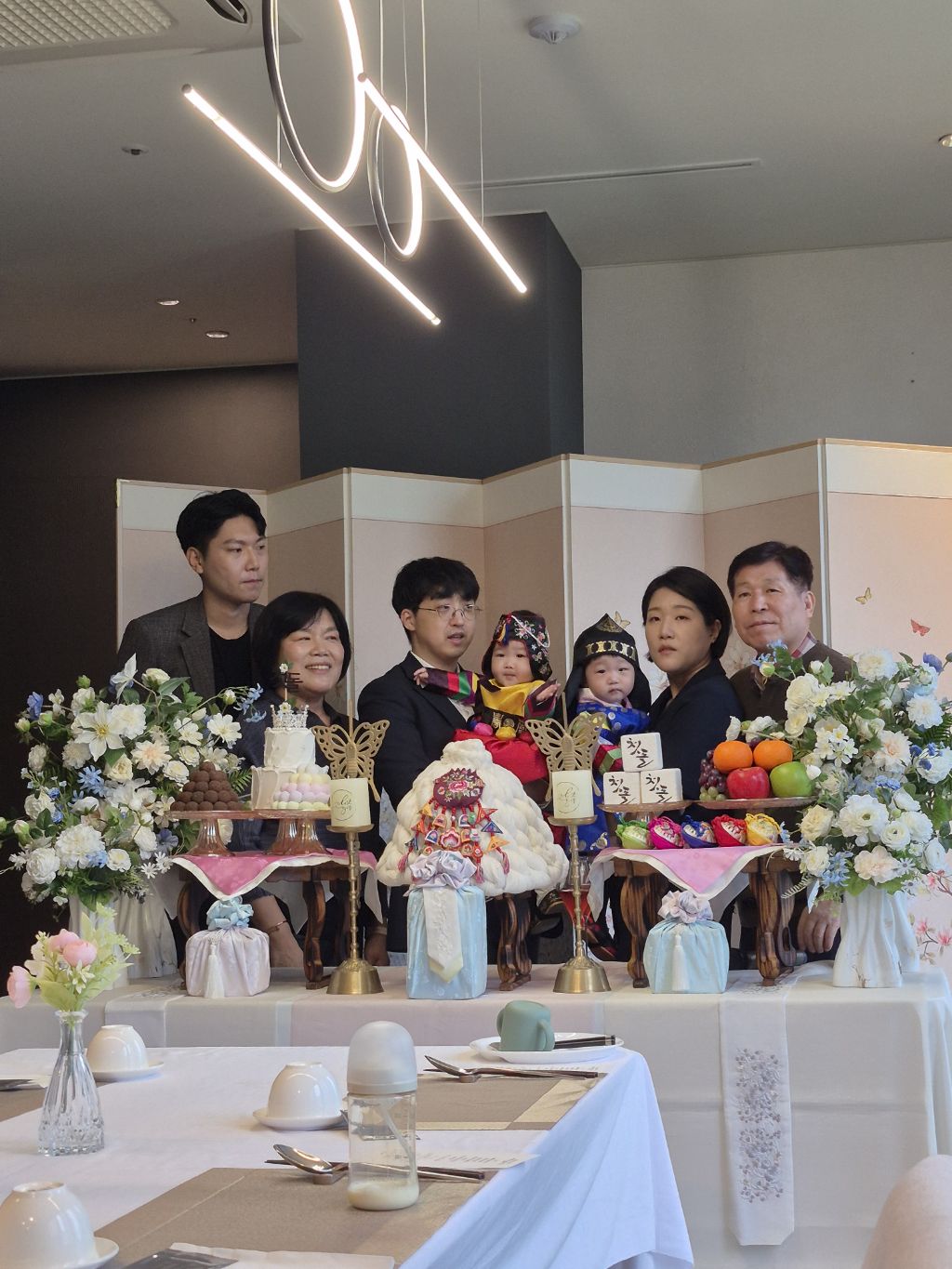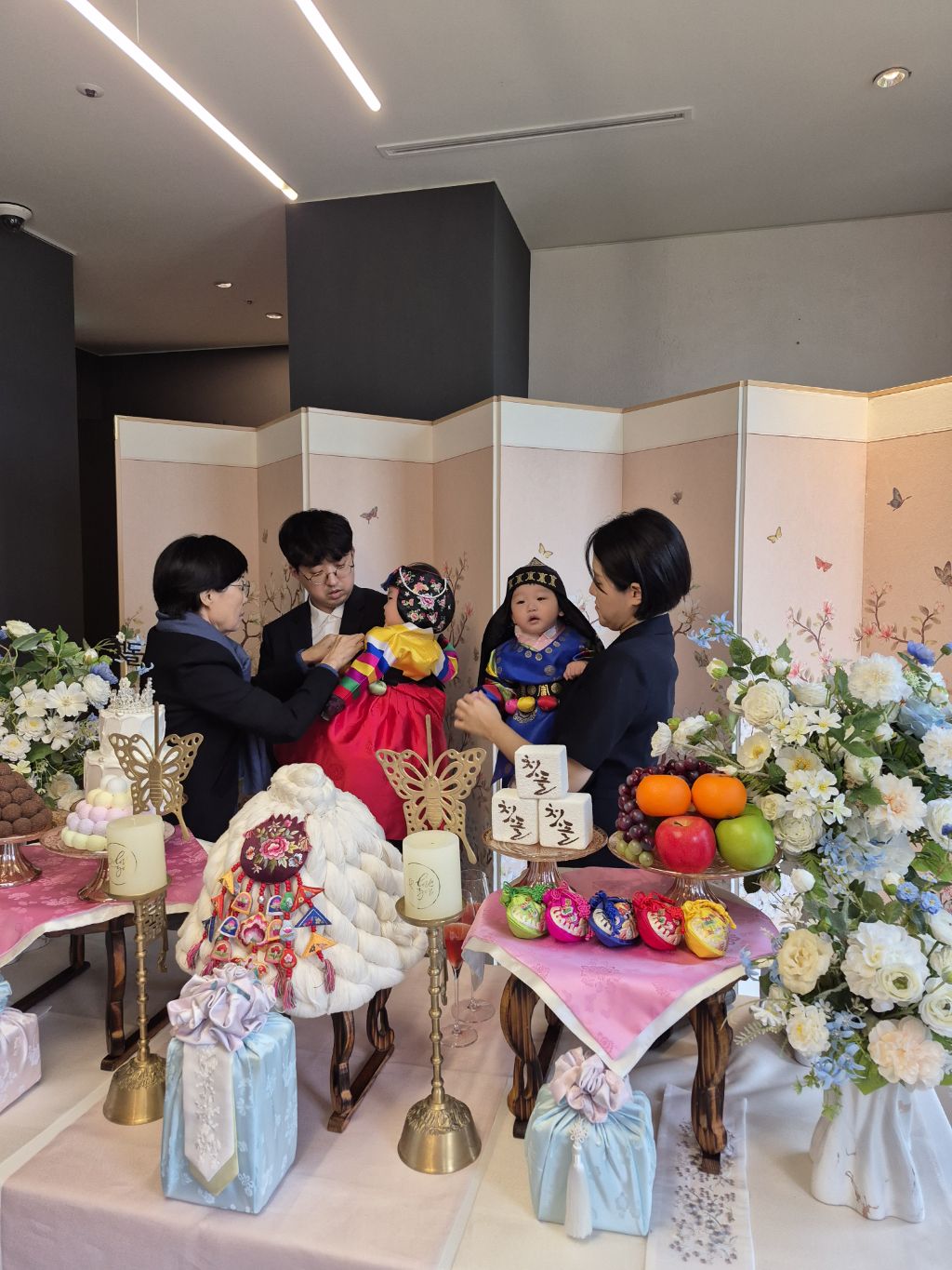 오늘 쌍둥이 돌 잔치를 수원 동류관에서 했다.