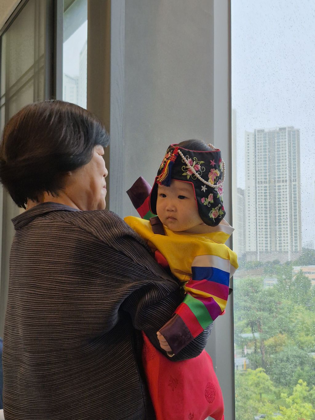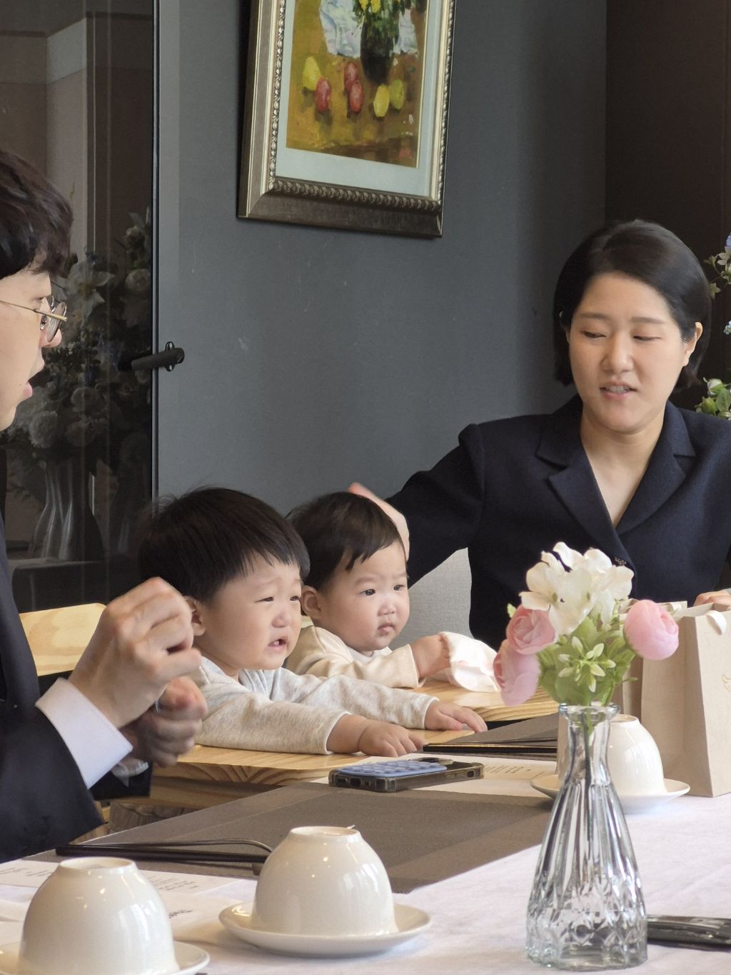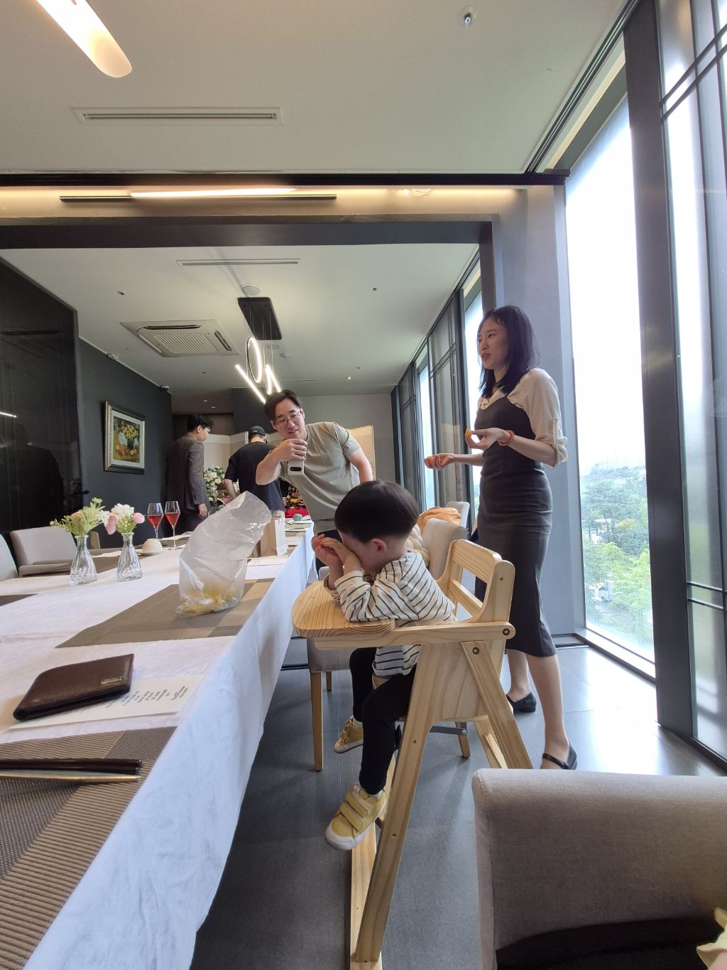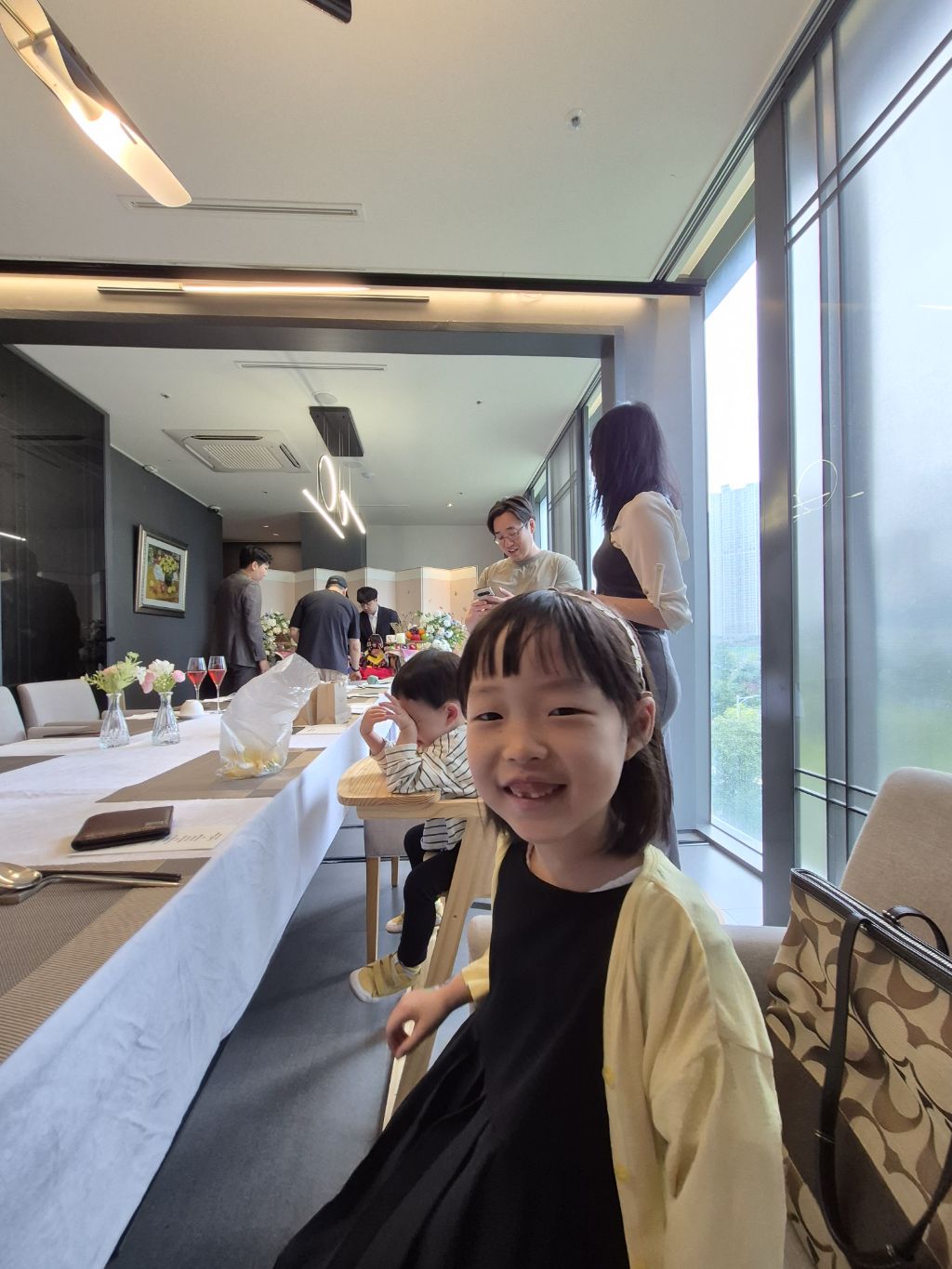 도건이 정빈이는 한복으로 갈아 입히고 있어 연회실에는 외할아버지와 사진사만 있었다.