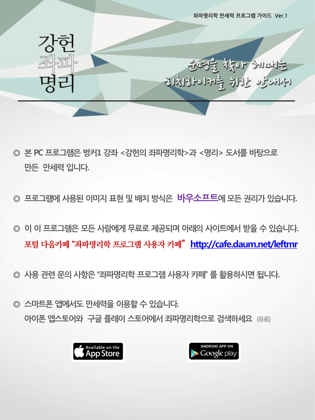 20160308_좌파명리학 만세력 PC버젼 매뉴얼.pdf