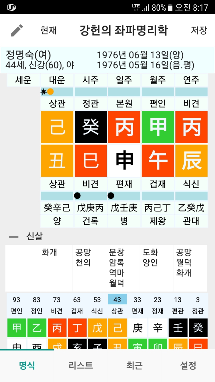 1.사주 : 76년 음력 5월16일 사시