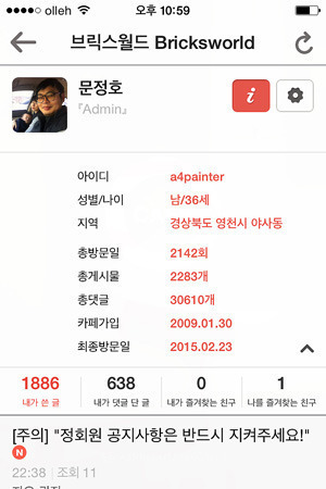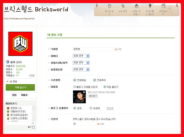 브릭스월드는 실명제 카페이며, 회원정보는 회원공개를 해야합니다. 아니 할 경우 정회원이 아닌 등급으로 강등될 수