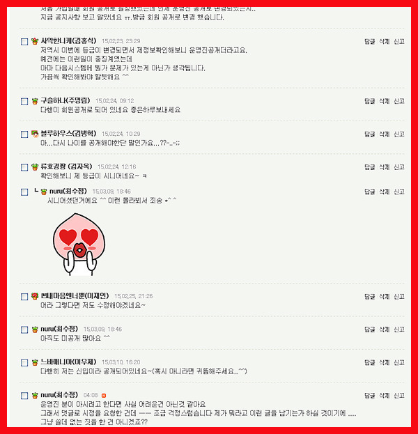 허용된 것입니다. 다음 카페 시스템에 따른 것으로 운영자 및 해당게시판 게시판지기는 게시글의 비밀 댓글도