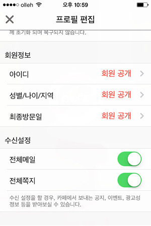② 내 정보 수정에서..회원정보 사항인 아이디, 성별/나이/지역, 최종방문일을 회원공개로 반드시 수정합니다.