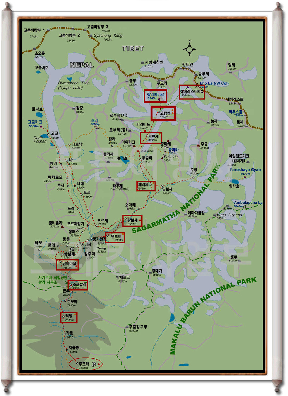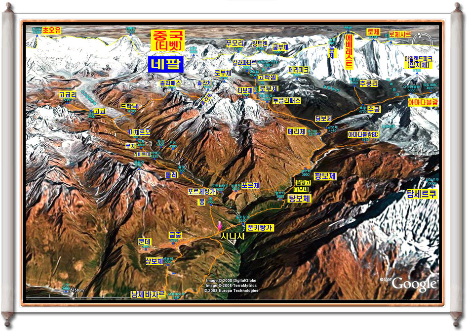 에베레스트,아마다블람,로체,등 쿰부지역의 아름답고 유명한