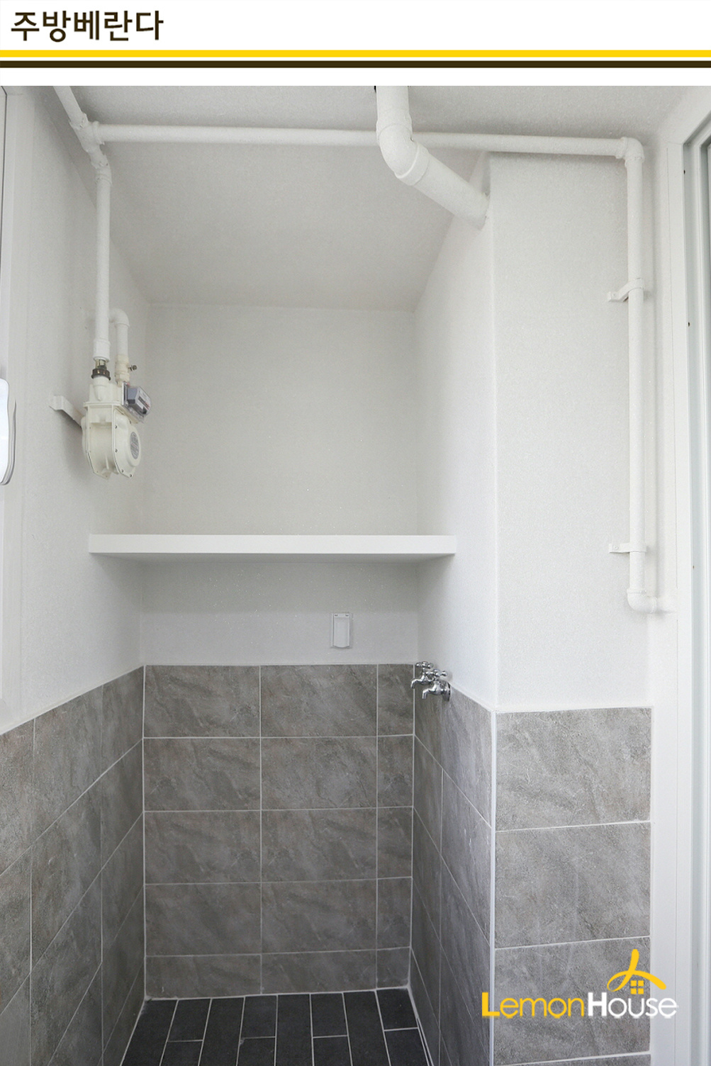 범천동 범천경남아파트의 거실베란다는 탄성코트와 함께 타일시공을 진행해드렸습니다.
