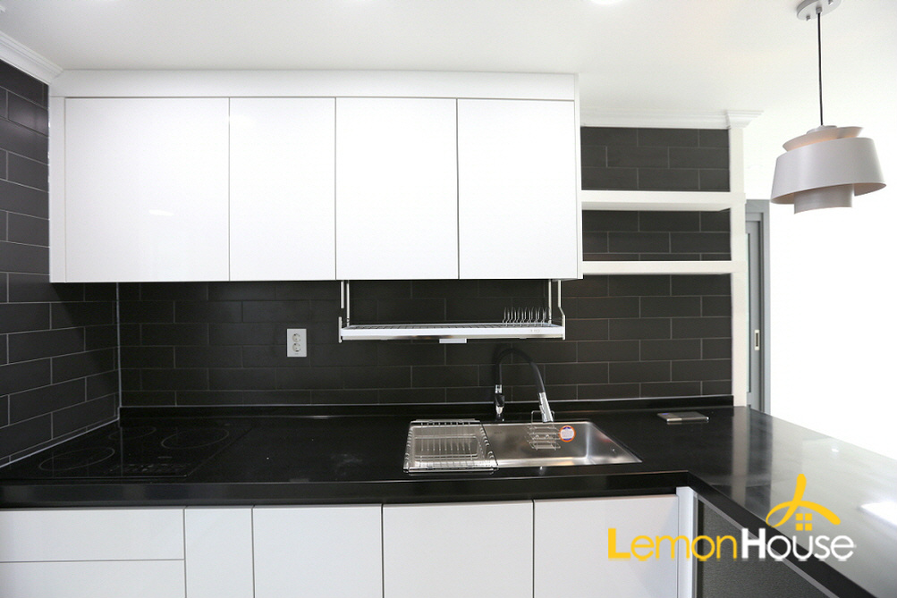 범천동 범천경남아파트의 주방인테리어는 ㄱ자 싱크대를 시공해드렸답니다.