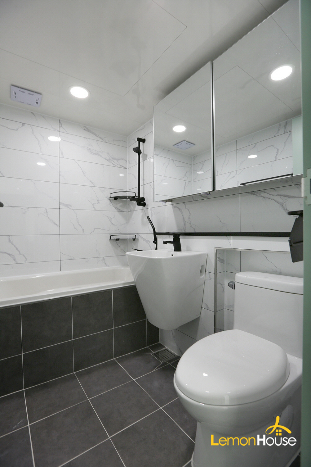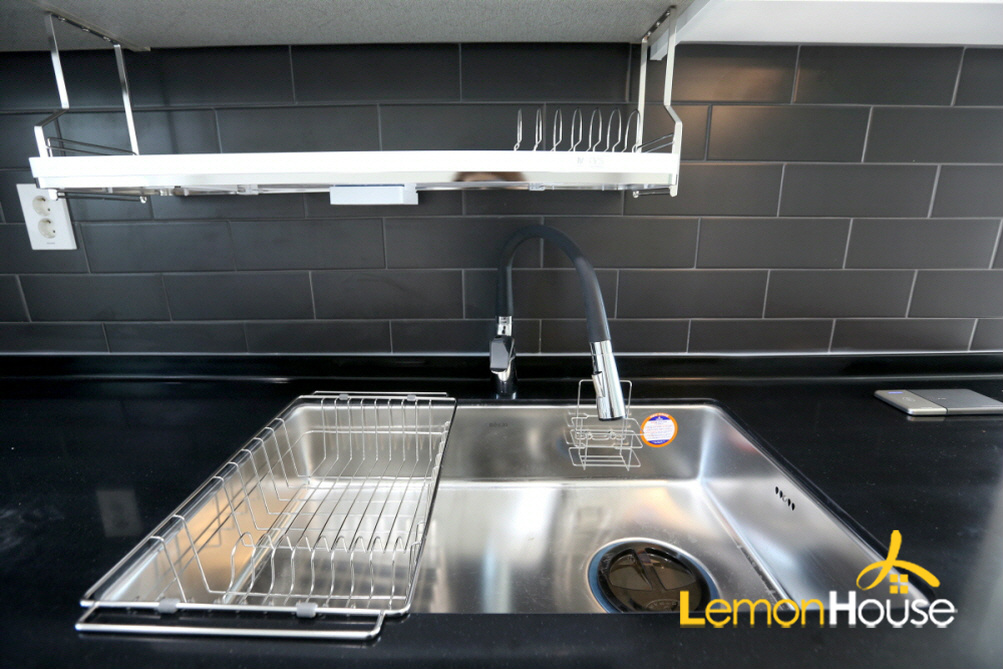 벽타일을 블랙으로 잡았기 때문에 화이트 싱크대가 더 돋보이는것 같네요^^