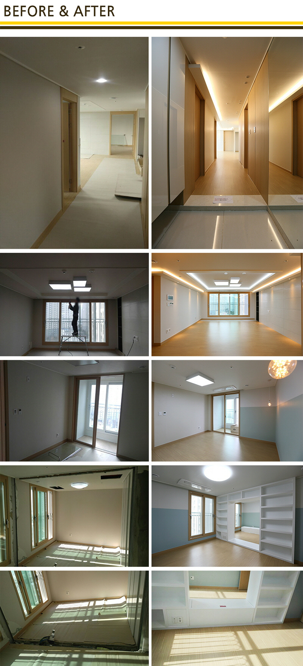 작은방 2곳을 터서 그 사이에 가벽책장을 작업해드렸습니다.