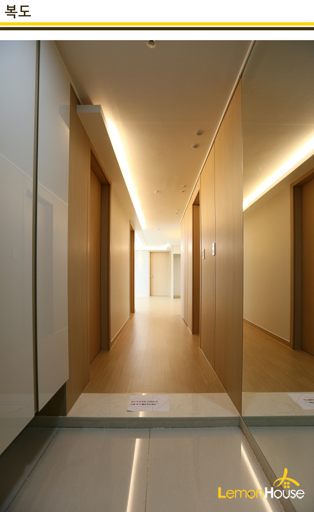 해운대 재송동 센텀계룡리슈빌의 복도인테리어는 아늑한 분위기를 위해