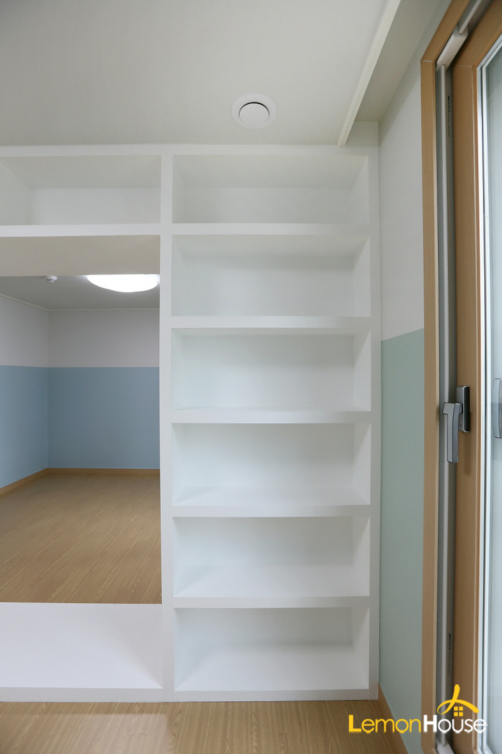 가벽 책장인데요.^^ 레몬하우스가 꼼꼼한 목공,필름시공으로 실용적인 가벽책장을