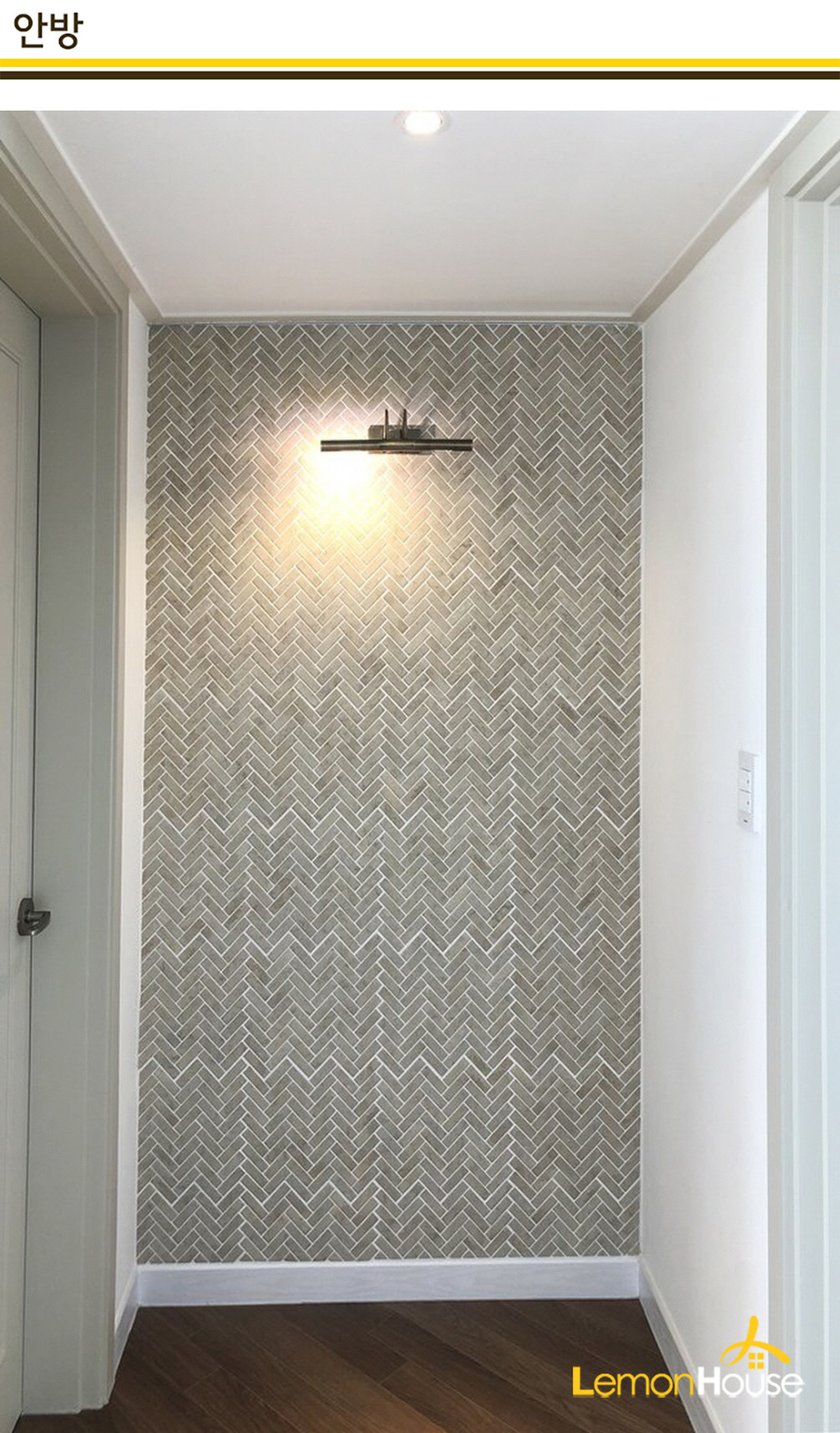 헤링본 벽타일을 시공하고 조명을 멋진디자인으로 넣어드렸어요.