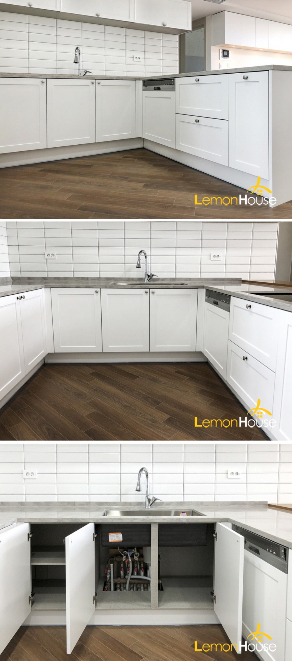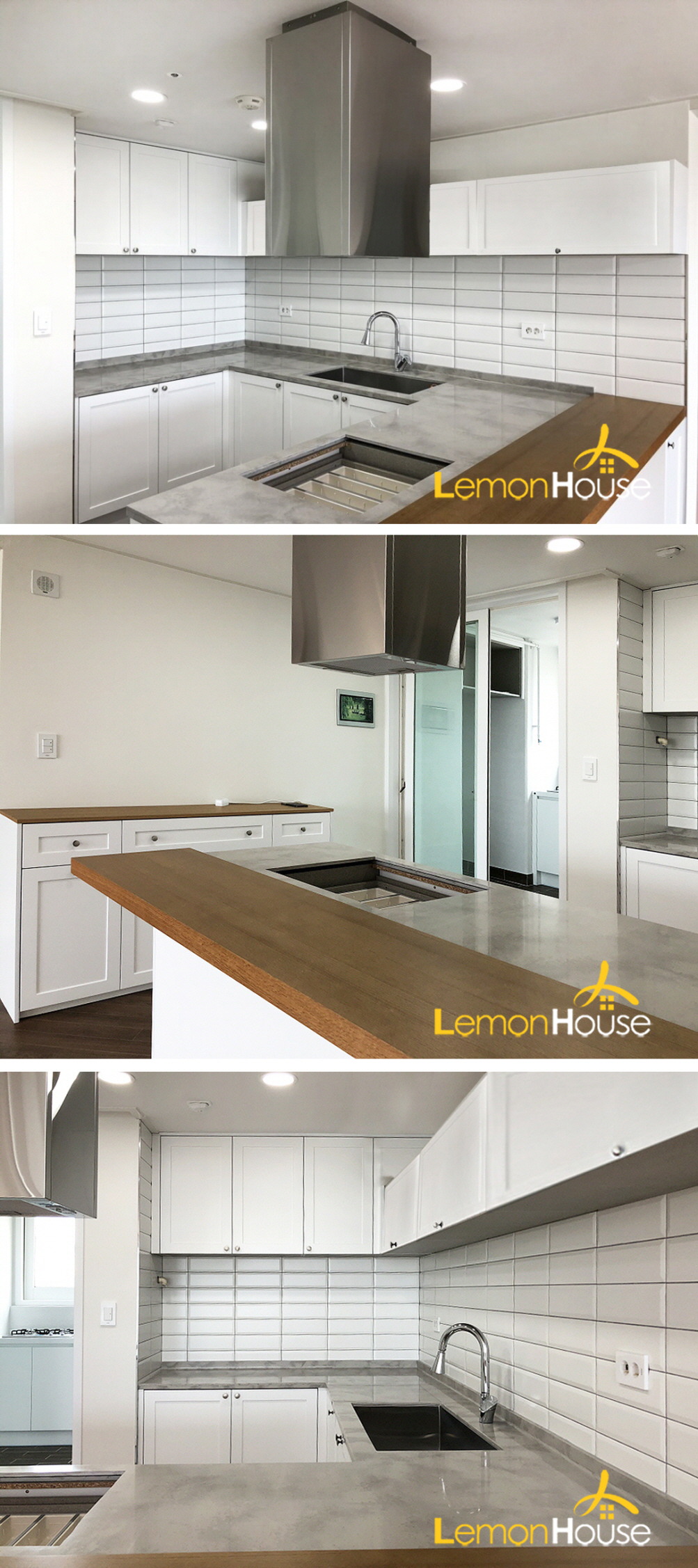 레몬하우스 자매 키친앤코의 도장싱크대를 시공한 다대포 롯데캐슬몰운대의 주방인테리어입니다.