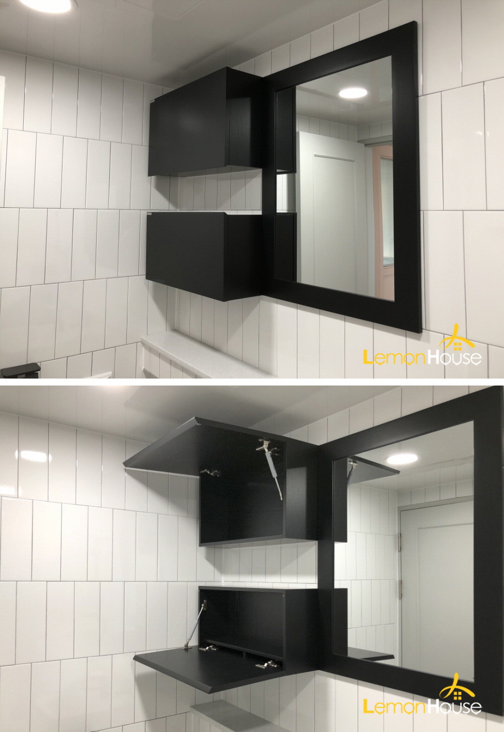 우드 장과 선반을 시공해드리고 원형 거울을 진행하여 심플한 멋을 추가해드렸습니다^^
