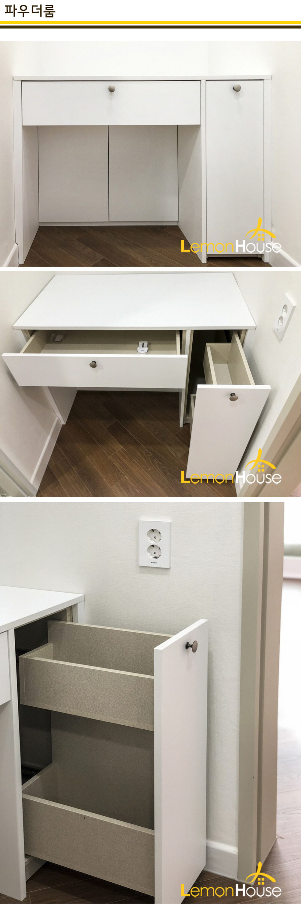 화장대와 붙박이장 모두 고객님의 니즈에 맞춰 규격,내부수납,디자인을 1:1 제작해드렸습니다.