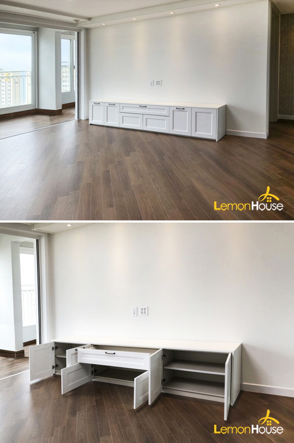 티비가 놓여질 공간에는 낮은 거실장을 맞춤제작하여 공간에 실용성과 디자인감각을 더해드렸답니다^^