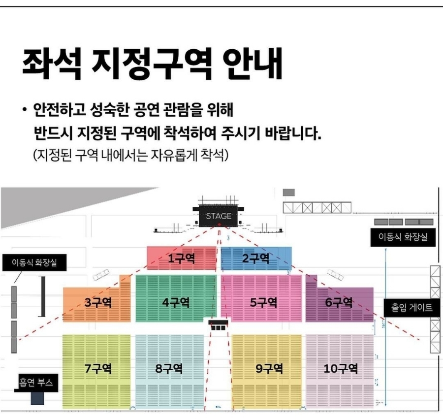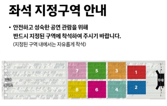 지난 공연에는 주차장 동쪽에 무대를 설치하고 관람구역을 세로로 길게 배치했는데,