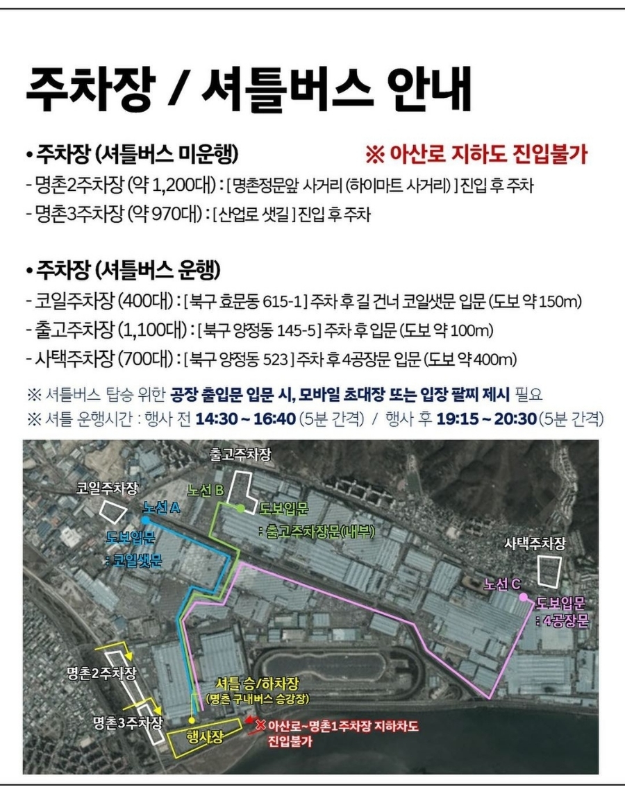 - 장소: 현대자동차 울산공장 명촌주차장 (울산광역시 북구 명촌동 433-1)
