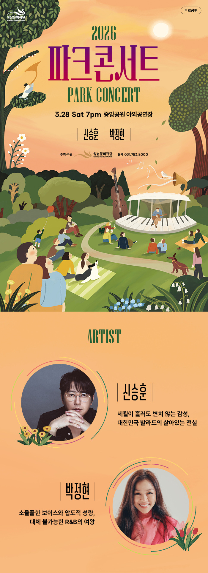 [행사]3월 28일(토) 19:00 - 2026 성남 파크콘서트 (경기 성남) 작성자늘푸른.|작성시간26.03.04|조회수194 목록 댓글 2 글자크기 작게가 글자크기 크게가 2026 성남 파크콘서트 - 일시: 2026년 3월 28일(토) 오후 7시- 장소: 분당중앙공원 (경기도 성남시 분당구 성남대로 550)- 출연: 박정현, 신승훈- 공지 다음검색 현재 게시글 추가 기능 열기 북마크 공유하기 신고 센터로 신고 댓글 댓글 2 댓글쓰기 답글쓰기 댓글 리스트 작성자캐로로중사 | 작성시간 26.03.13 감사 작성자넋나간 피ㅡ위 | 작성시간 26.03.19 ㅎㅎ 드디어 분당에서도…기대 합니다~~ 댓글 전체보기