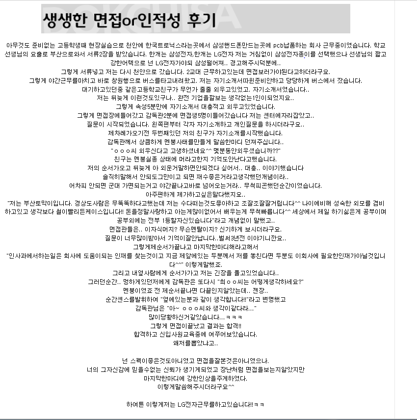 LG전자 생산직 면접 후기 작성자이길호(교사)|작성시간13.06.11|조회수676 목록 댓글 0 글자크기 작게가 글자크기 크게가 출처: 네이버 카페 독취사 다음검색 현재 게시글 추가 기능 열기 북마크 공유하기 신고 센터로 신고 댓글 댓글 0 댓글쓰기 답글쓰기 댓글 리스트