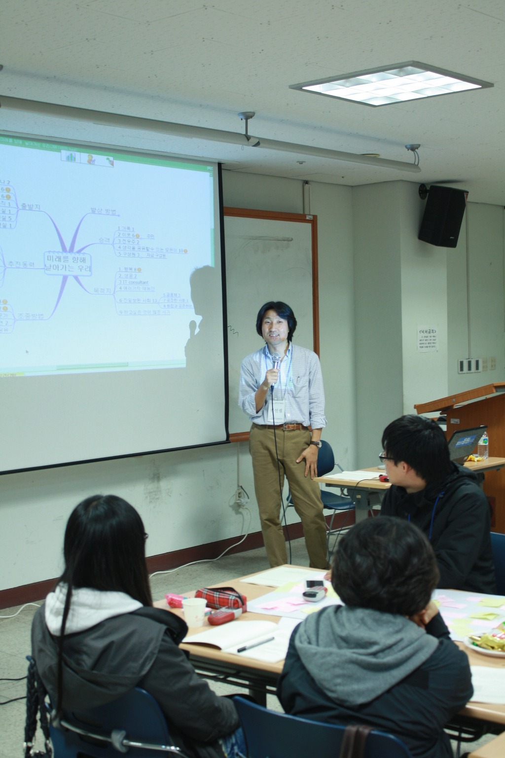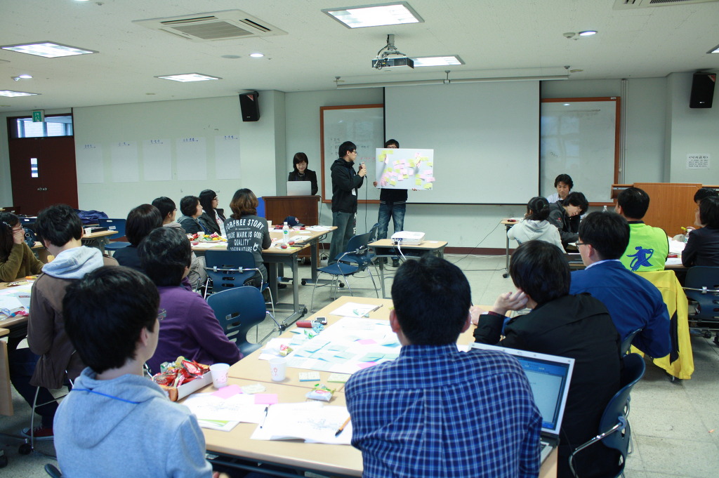 세 번째 시간에는 권선필 교수님의 강의 및 토론이 이어졌다. 대규모 회의의 구조와 다이내믹을 이해하고, 이를 설계하는 방법을 학습하고, 실제 진행된 사례를 통한 사례학습이 진행되었다. 발상과 토론을 통해 나온 결과에 대해 공감도 진단을 했고, 참가자들의 생각을 들어보는 시간을 가졌다.
