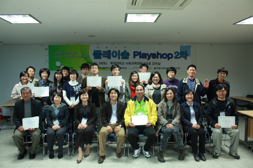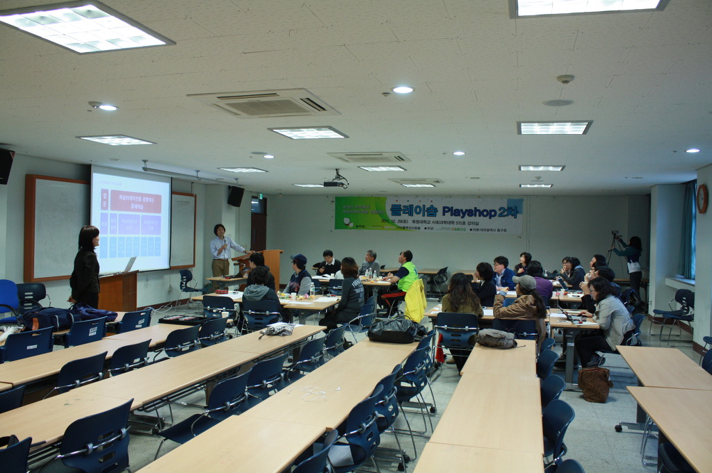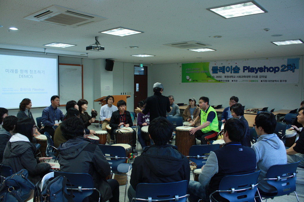 디모스에서는 교육사업의 하나로 2011년 10월 29일 토요일 오후 1시 30분부터 7시까지 목원대학교 사회과학대학 503호 강의실에서 비영리 조직에서 퍼실리테이션을 경험하는 플레이숍 2차 입문과정을 진행했다.