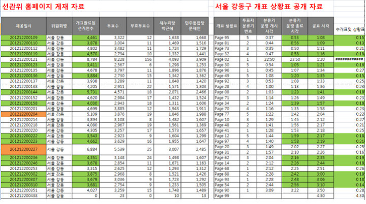 - 서울 강동구 개표 상황표 공개자료(중앙선관위 자료제공)-