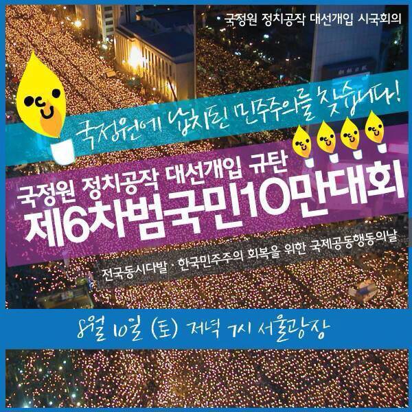 우리는 천만 촛불이 될 때까지 스스로를 태워 어둠을 밝히겠습니다! 대한민국 방방곡곡에서 빛으로 어둠을 물리칠 때까지 광장투쟁을 통하여 이 암울한 어둠을 밝히는데 우리 촛불시민과 네티즌들은 그 소임을 다하겠습니다!