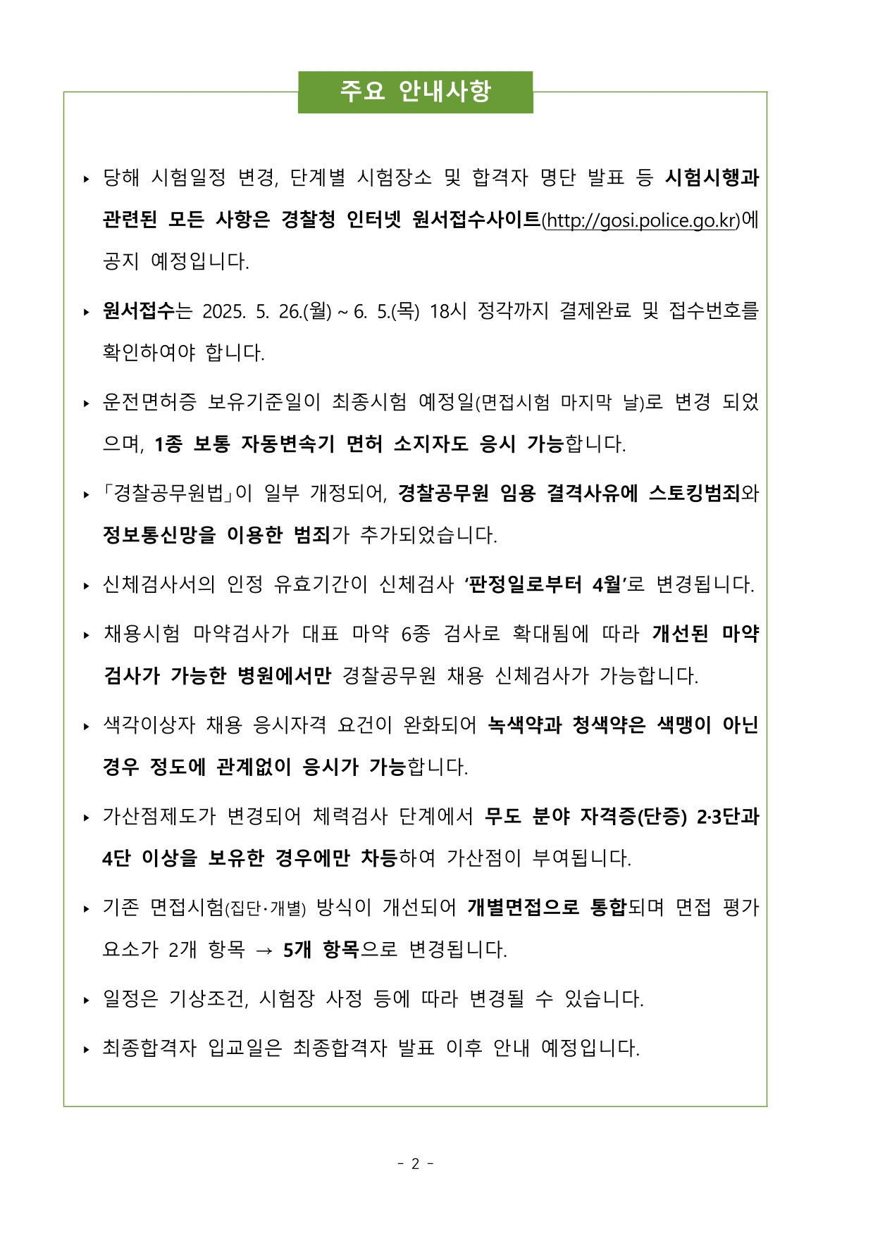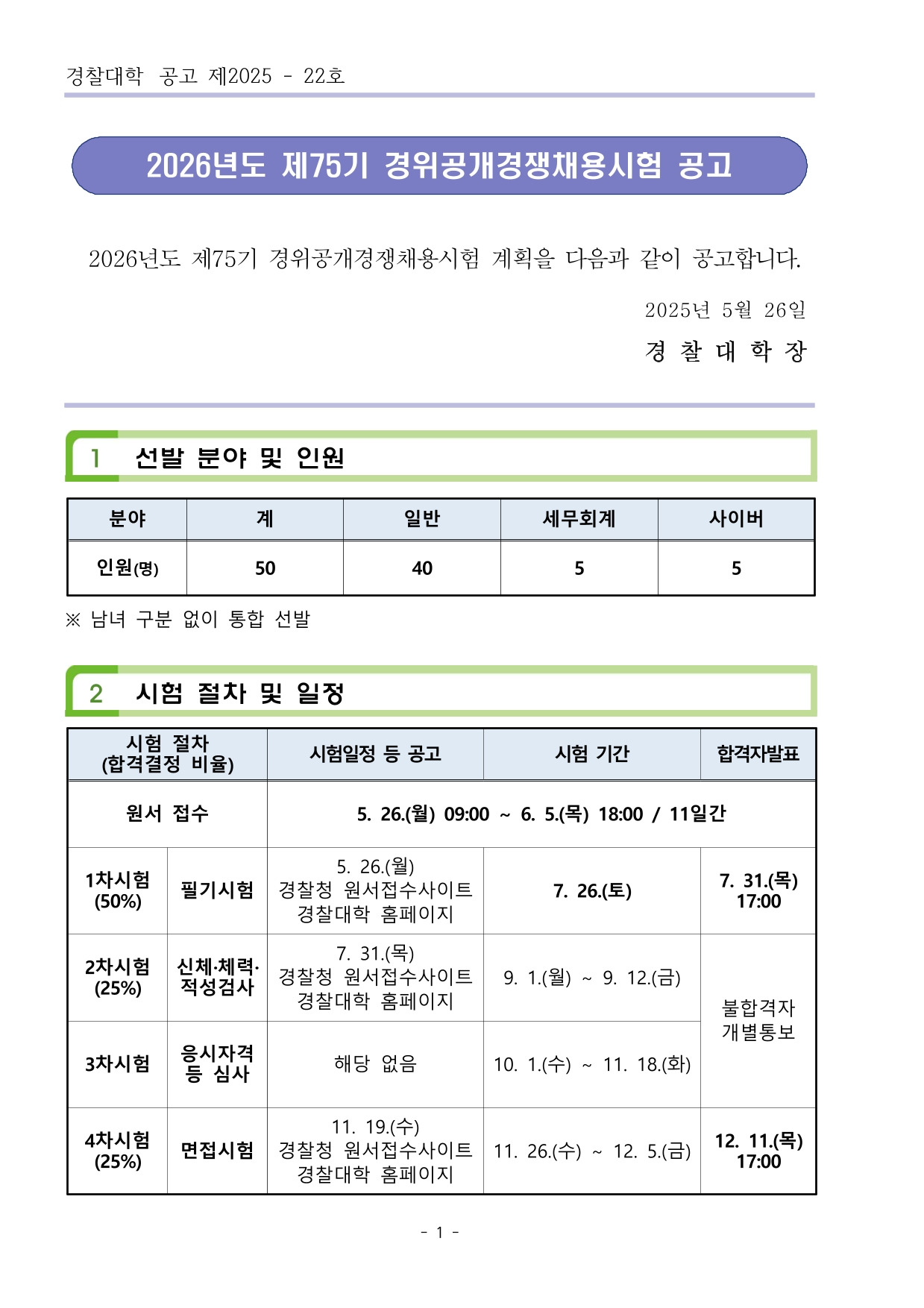 2026년도 제75기 경위공채 원서접수 - 5/26~6/5 작성자렉스 김과장|작성시간25.05.29|조회수1,244 목록 댓글 0 글자크기 작게가 글자크기 크게가 2026년도 제75기 경위공개경쟁채용시험 공고(최종).pdf1.01MB 첨부파일첨부된 파일이 14개 있습니다. jpg 파일 1.jpg 다운로드 jpg 파일 2.jpg 다운로드 jpg 파일 3.jpg 다운로드 jpg 파일 7.jpg 다운로드 jpg 파일 8.jpg 다운로드 jpg 파일 4.jpg 다운로드 jpg 파일 5.jpg 다운로드 jpg 파일 6.jpg 다운로드 jpg 파일 9.jpg 다운로드 jpg 파일 10.jpg 다운로드 jpg 파일 11.jpg 다운로드 jpg 파일 12.jpg 다운로드 jpg 파일 13.jpg 다운로드 pdf 파일 2026년도 제75기 경위공개경쟁채용시험 공고(최종).pdf 다운로드 다음검색 현재 게시글 추가 기능 열기 북마크 공유하기 신고 센터로 신고 댓글 댓글 0 댓글쓰기 답글쓰기 댓글 리스트