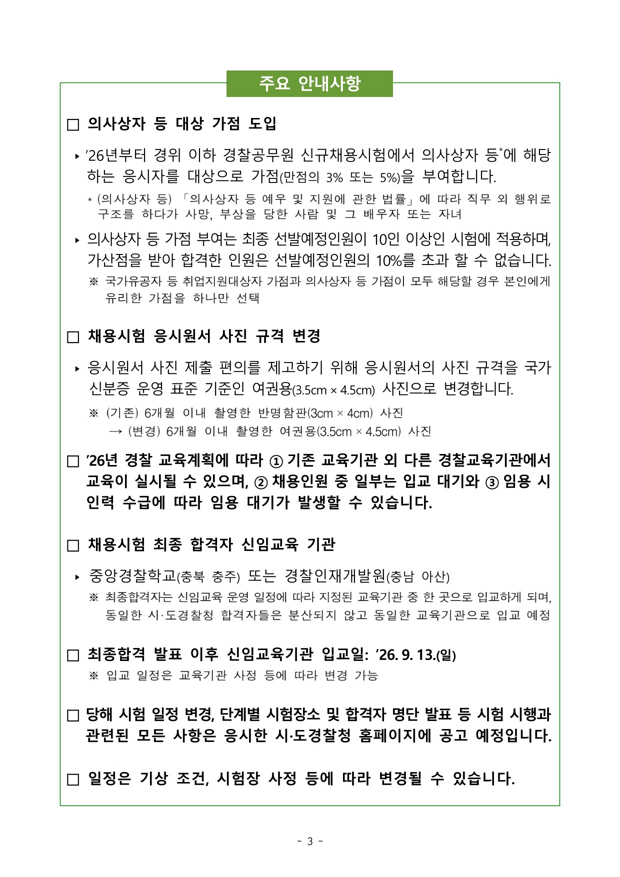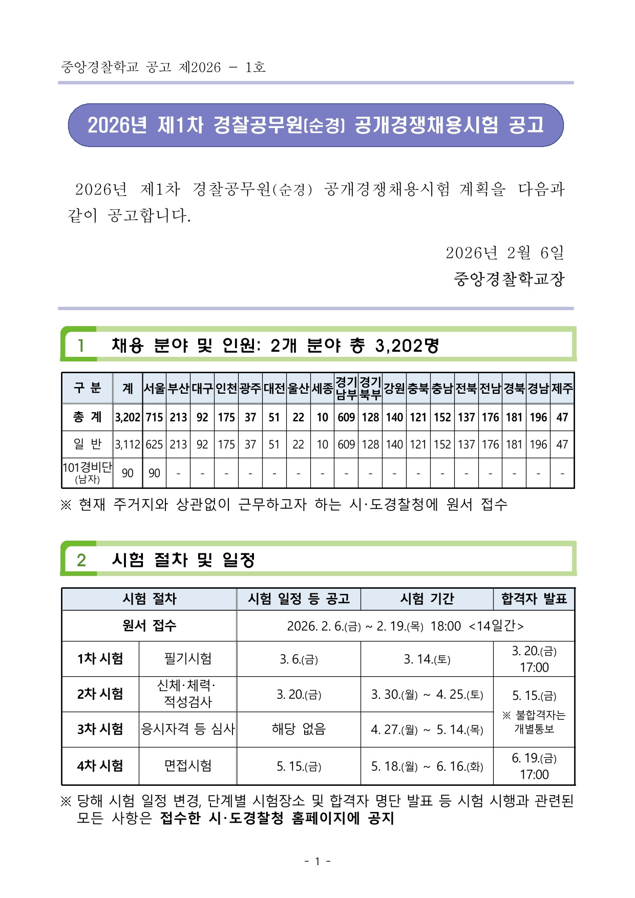 26년 제1차 경찰공무원(순경) 공채 공고문 작성자렉스 김과장|작성시간26.02.06|조회수1,008 목록 댓글 0 글자크기 작게가 글자크기 크게가 '26년 제1차 경찰공무원(순경) 공채 공고문.pdf4.33MB 첨부파일첨부된 파일이 15개 있습니다. jpg 파일 1.jpg 다운로드 jpg 파일 2.jpg 다운로드 jpg 파일 3.jpg 다운로드 jpg 파일 8.jpg 다운로드 jpg 파일 4.jpg 다운로드 jpg 파일 6.jpg 다운로드 jpg 파일 9.jpg 다운로드 jpg 파일 7.jpg 다운로드 jpg 파일 5.jpg 다운로드 jpg 파일 13.jpg 다운로드 jpg 파일 10.jpg 다운로드 jpg 파일 12.jpg 다운로드 jpg 파일 14.jpg 다운로드 jpg 파일 11.jpg 다운로드 pdf 파일 '26년 제1차 경찰공무원(순경) 공채 공고문.pdf 다운로드 다음검색 현재 게시글 추가 기능 열기 북마크 공유하기 신고 센터로 신고 댓글 댓글 0 댓글쓰기 답글쓰기 댓글 리스트