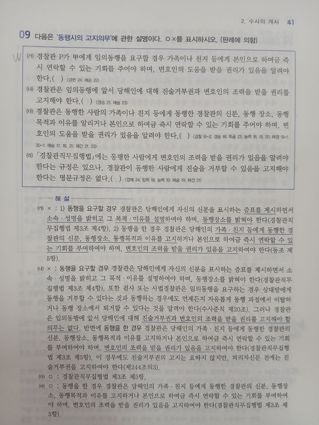 핵심천제 41p 9번의 가 지문에 의하면 X인데 25년 경찰대 편입에서는 맞는 지문으로 출제되었습니다