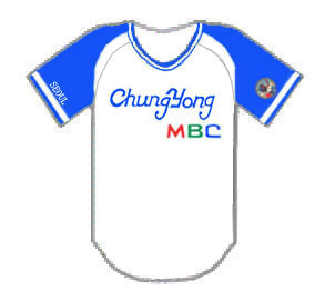 서울팀의 첫 유니폼. 파란색 소매에 가슴에는 청룡의 영어 표기와 당시 MBC 로고가 새겨져 있다.