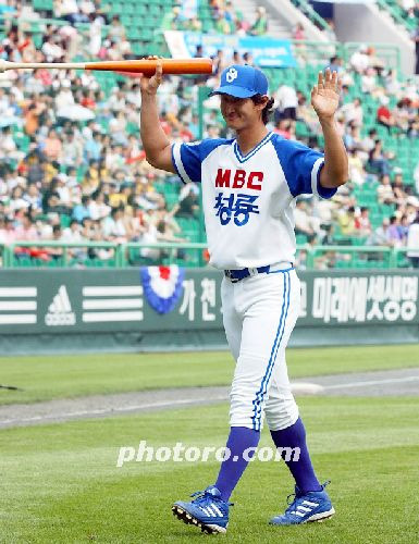 오른쪽 것(빨간색 MBC로고)은 후기리그 때 입었던거다.