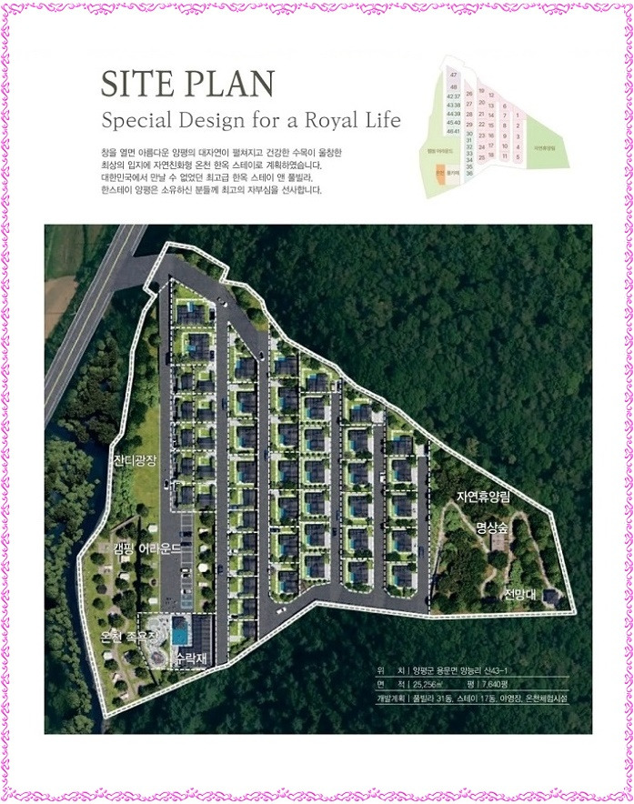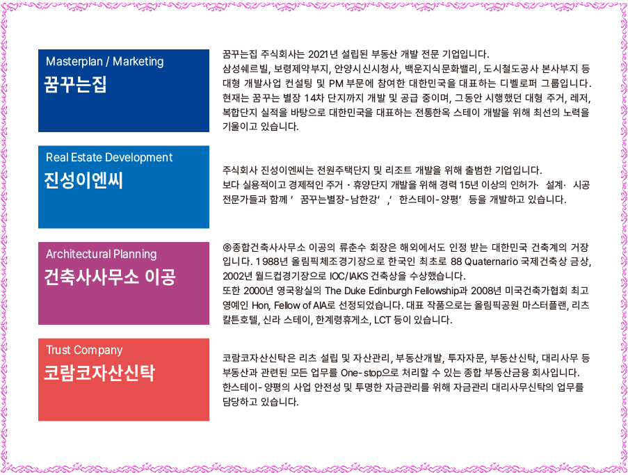 꿈꾸는 별장의 16번째 스토리, 꿈꾸는 별장이 완성하는 또 하나의 명작, 국내 최초, 국내 유일의 한옥 숙박 온천단지, 온천+숙박+휴양+상업+체험시설을 연계한 체류형 복합휴양단지 개발, 양평 최적의 접근성, 아름다운 힐링 여행지 양평에서 전통의 가치를 다시 세운 한스테이 양평을 분양합니다.