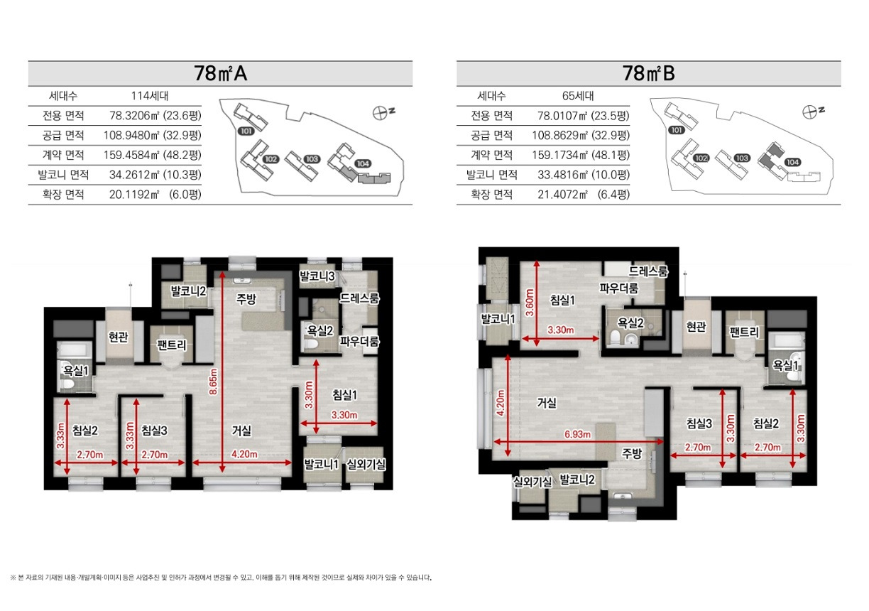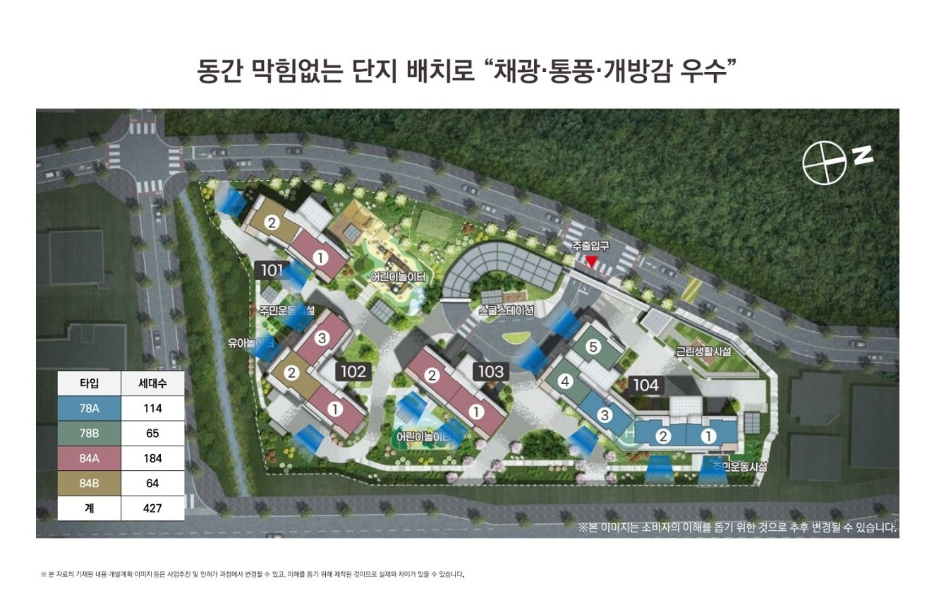 아울러, 실수요자의 라이프스타일에 맞춰 다양하게 선택할 수 있는 전용면적 ▲78㎡A⚬B ▲84㎡A⚬B Type 채광⚬통풍우수 4Bay 판상형⚪타워형 맞통풍 혁신 평면구조로 구성하였으며 팬트리, 드레스룸 등 여유롭고 다양한 수납공간으로 공간 활용 극대화, 친환경 마감재, 풍요로움과 아름다움을 공간에 담은 고품격 인테리어 등 트렌디한 특화설계를 하였습니다.
