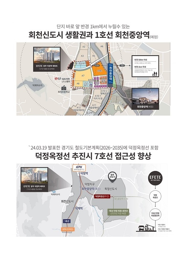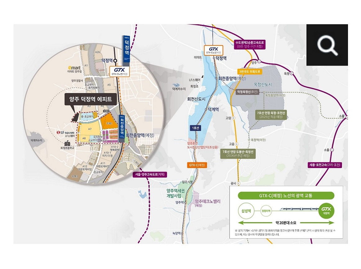 1호선 회천중앙역(예정), GTX-C 덕정역(2027년 개통예정)