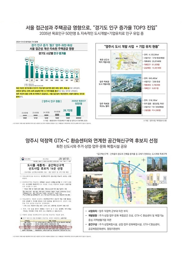 양주 덕정역 에피트는 2024년 11월 30일 기준 양주시 총인구 28만 8273명(3년 전(23만 6302)과 비교 22%가량 증가), 양주신도시 조성사업 완료 시 옥정⚪회천지구를 더해 7만여 세대, 17만 7천여 명 거주 수도권 동북부지역 최대 규모 신도시로 발돋움 기대, 양주⚪회천신도시개발, 겅기양주테크노밸리와 회천첨단산업단지 조성, 양주역세권 개발사업 등 신도시와 구암⚪남면⚪상수⚪검준⚪은남⚪도하⚪홍죽⚪원⚪서울우유 일반산업단지 완공 시 고소득 종사자 유입 등 주거 선호도 최 상위 지역으로 풍부한 배후수요를 품었습니다.