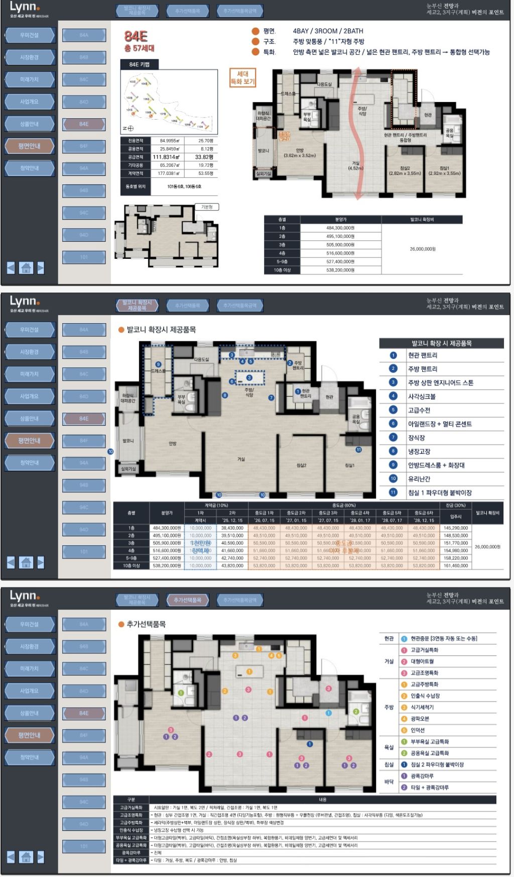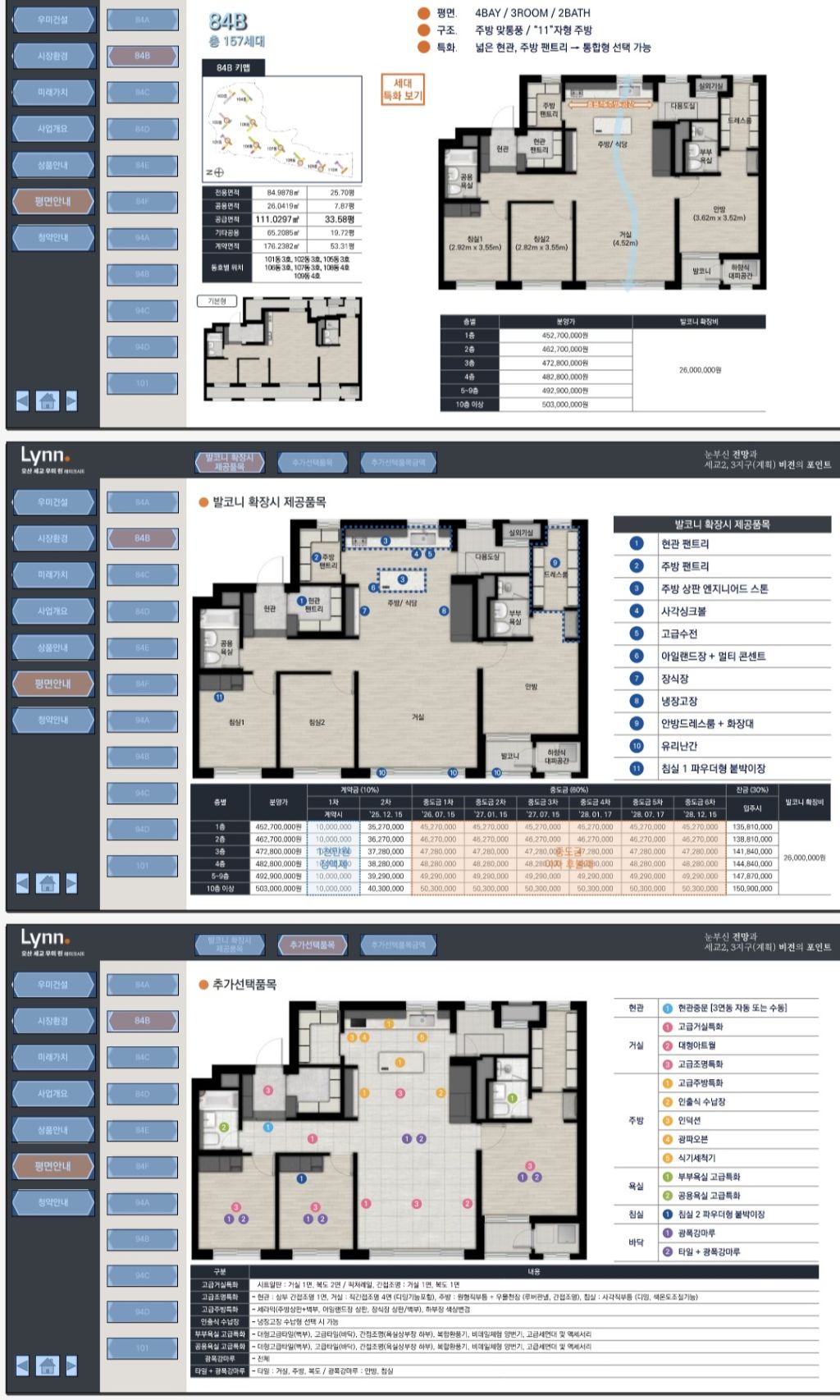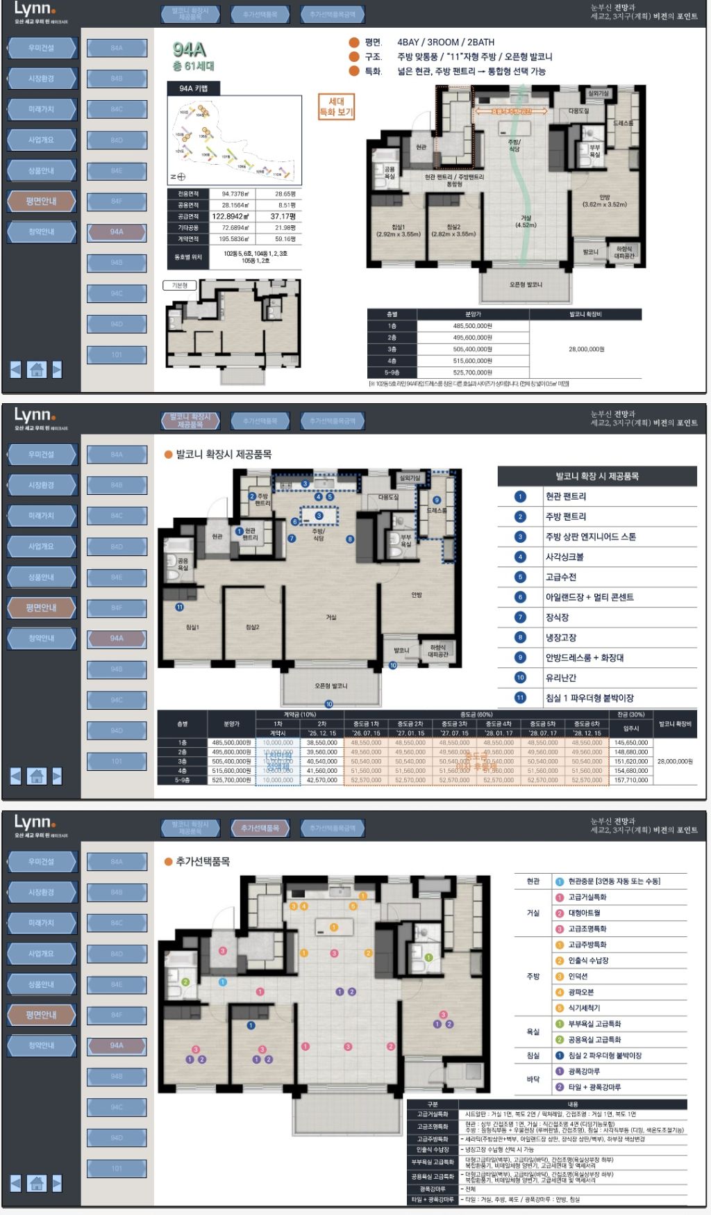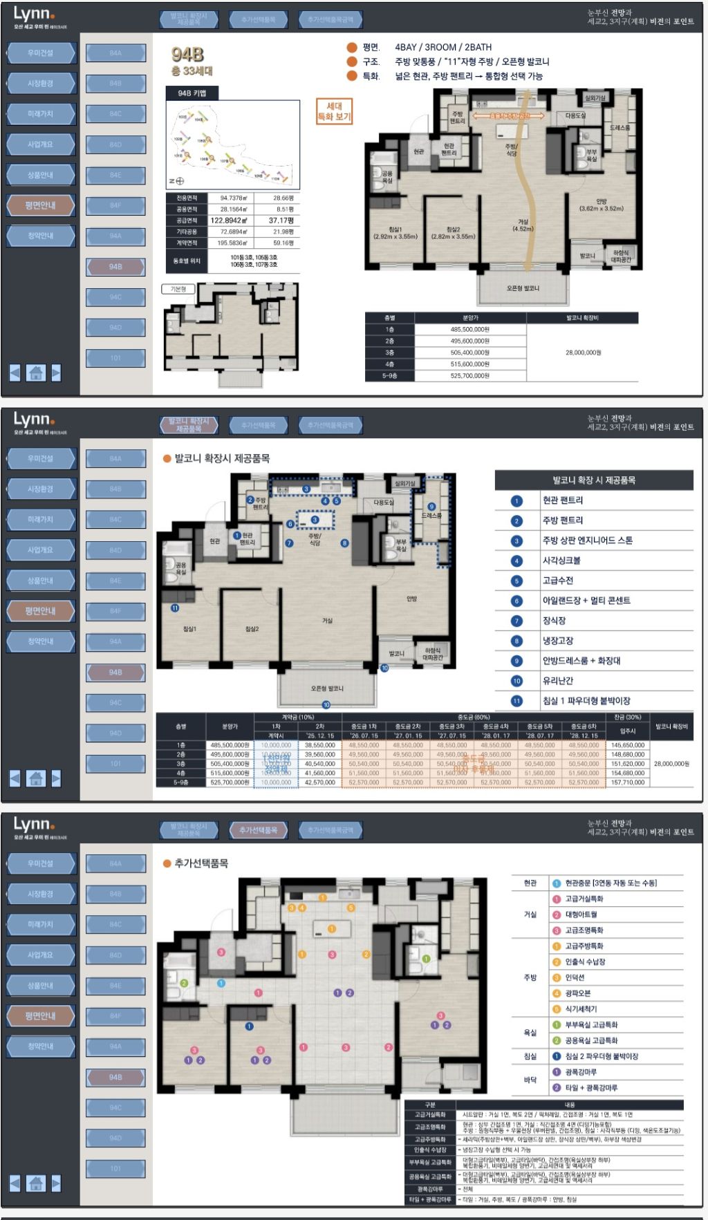 전용면적: 84㎡ / 94㎡ / 101㎡