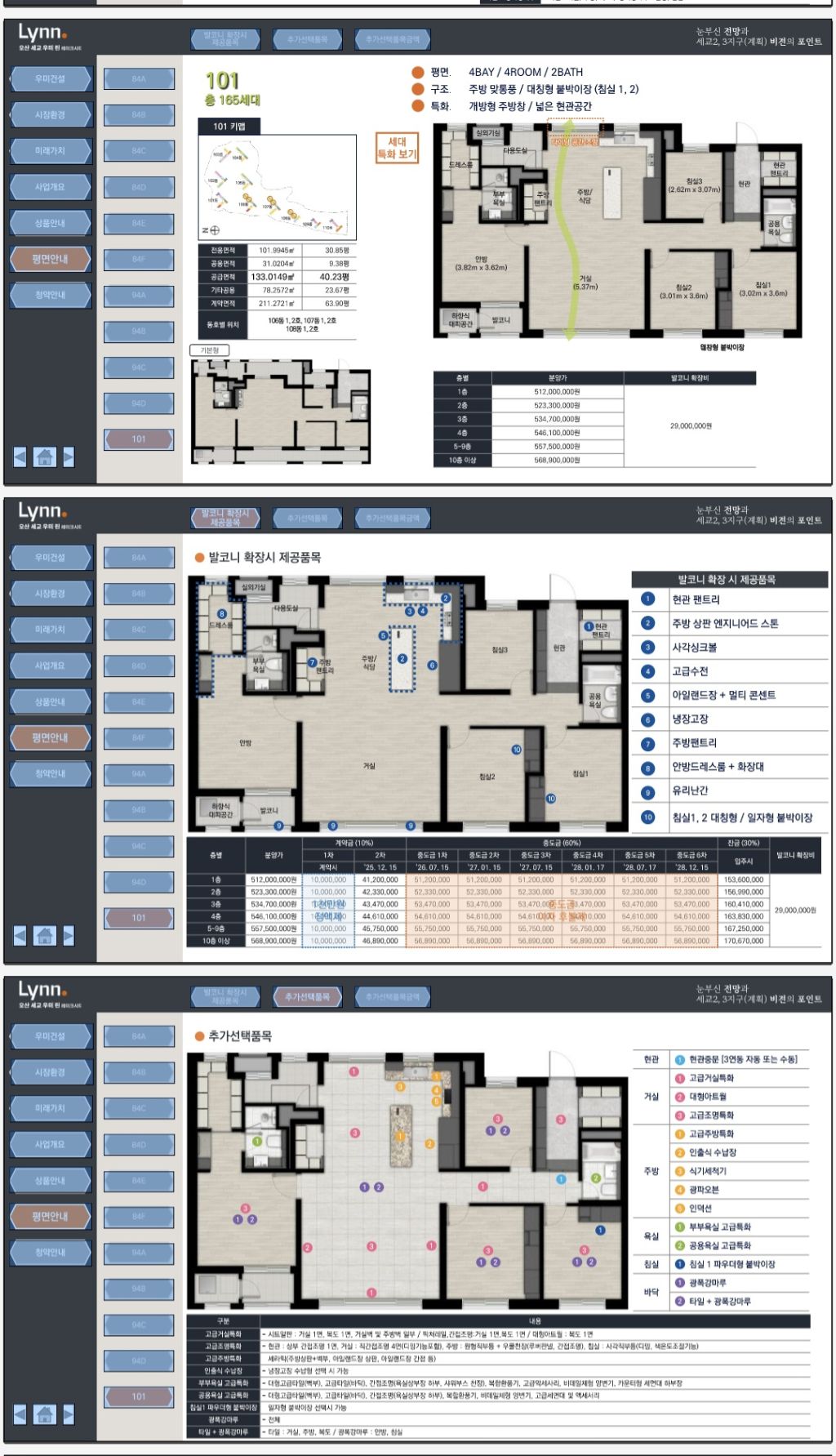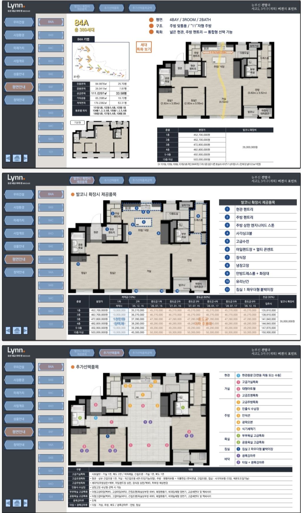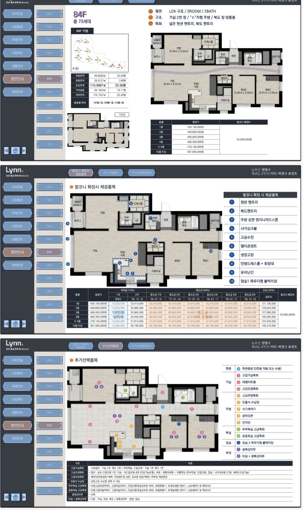 전용면적: 84㎡ / 94㎡ / 101㎡
