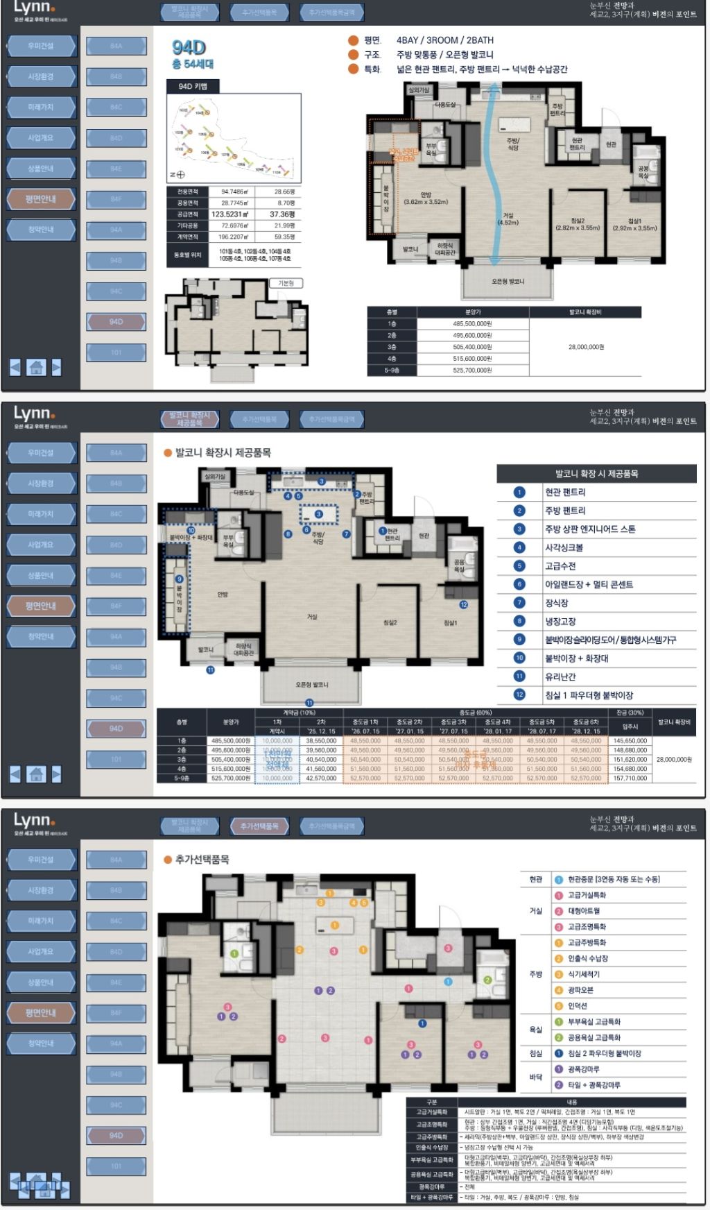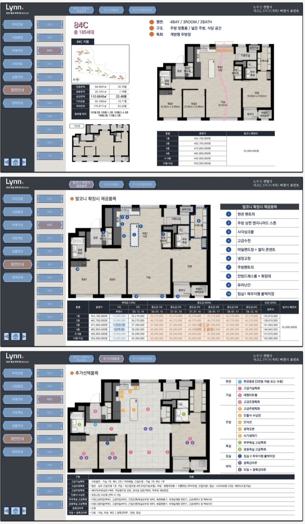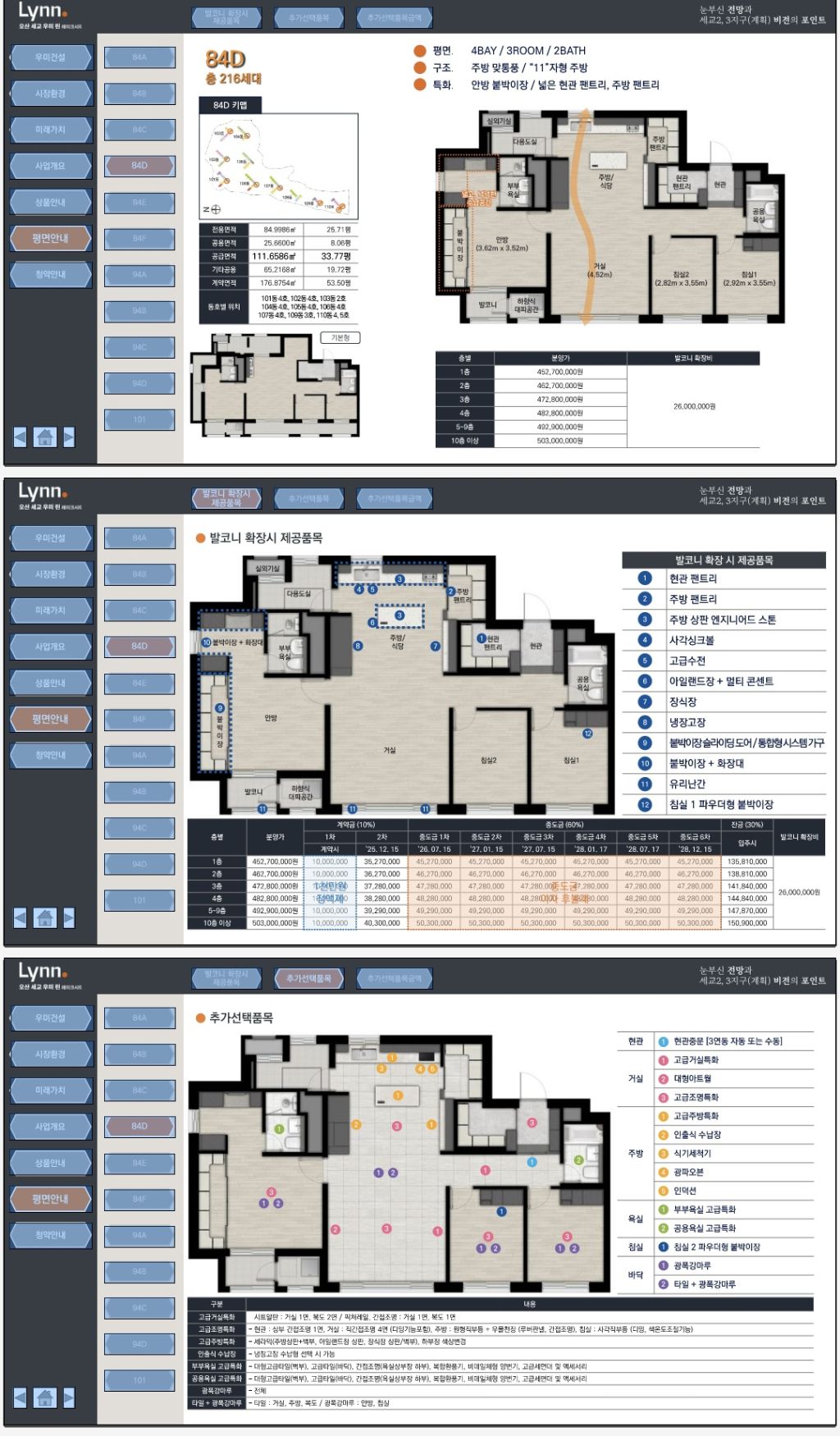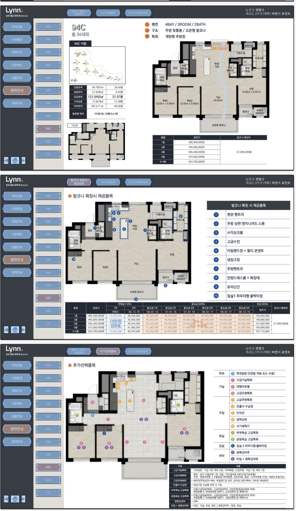 전용면적: 84㎡ / 94㎡ / 101㎡